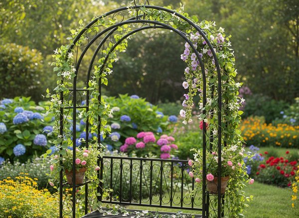 Pergola PERG-N9512 Chomik ni le funkcionalen element, temveč tudi dekorativni poudarek vrta. Z dodajanjem svetlobnih verig, visečih loncev ali tkanin lahko ustvarite prijeten kotiček za sprostitev. Njena minimalistična kovinska zasnova se lepo ujema z različnimi stili – od klasičnega do sodobnega. Uporabite jo kot prehod med različnimi deli vrta ali kot okvir za klop, kjer boste uživali v senci rastlin, ki jo bodo postopoma prerasle.