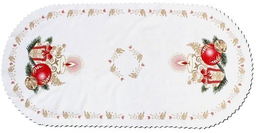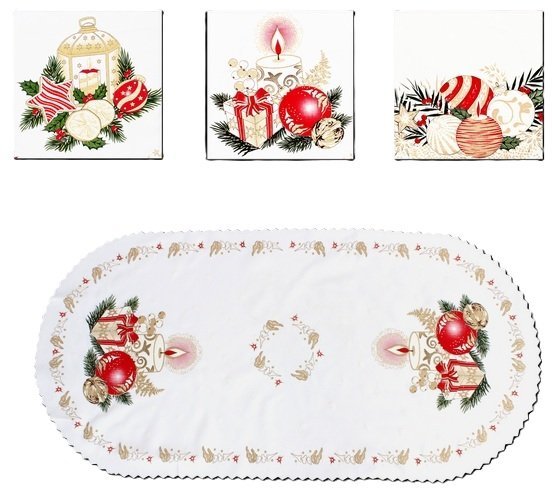 Čeprav v opisu ni naveden natančen material, je prt izdelan v skladu s standardi, ki zagotavljajo dobro obstojnost barv in prijeten občutek na dotik. Priporočljivo je ročno ali strojno pranje pri nizki temperaturi ter likanje pri zmerni toploti, da se ohrani oblika in svež videz. Ob pravilni negi bo prt ohranil svojo kakovost skozi več prazničnih sezon.