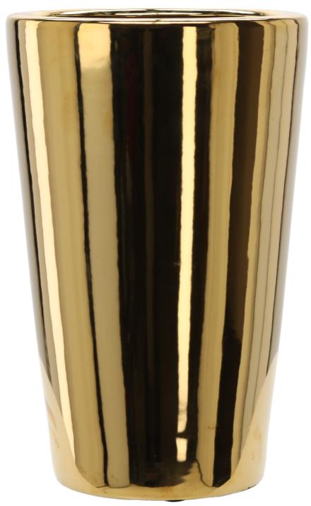 Ovitek je v celoti izdelan iz keramike, znane po svoji trpežnosti in odpornosti proti praskam. Površina je gladka ter prekrita s sijajnim zlatim zaključkom, ki odbija svetlobo in prostoru doda občutek topline in prestiža. Keramični material omogoča stabilnost in težo, zaradi česar ovitek varno stoji tudi pri večjih rastlinah. Vsi robovi so natančno obdelani, kar zagotavlja estetsko dovršenost in varnost pri rokovanju.