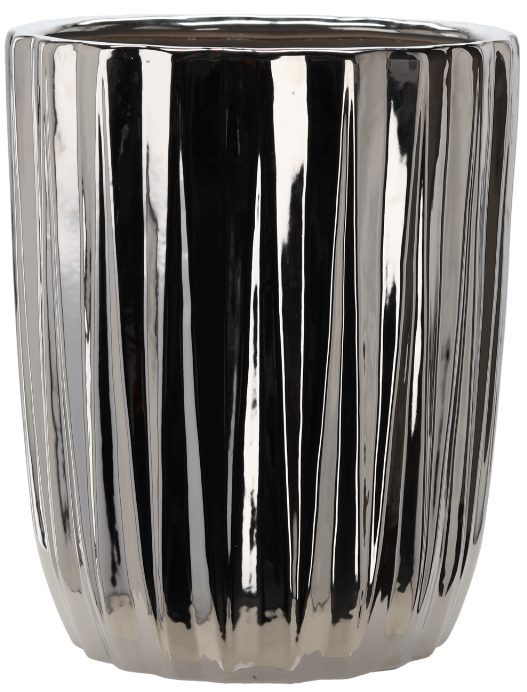 Keramični okrasni lonec ELI3444 znamke Chomik je elegantna izbira za vse, ki želijo svojemu notranjemu prostoru dodati pridih prefinjenosti. Z višino 48,5 cm in premerom 39,5 cm izstopa kot izrazit dekorativni element, hkrati pa ponuja dovolj prostora za večje lončnice. Izdelan je iz kakovostne keramike, ki zagotavlja trdnost, stabilnost in dolgo življenjsko dobo. Srebrna barva z visokim sijajem poskrbi za sodoben videz, medtem ko rebrasta tekstura doda globino in vizualni interes.