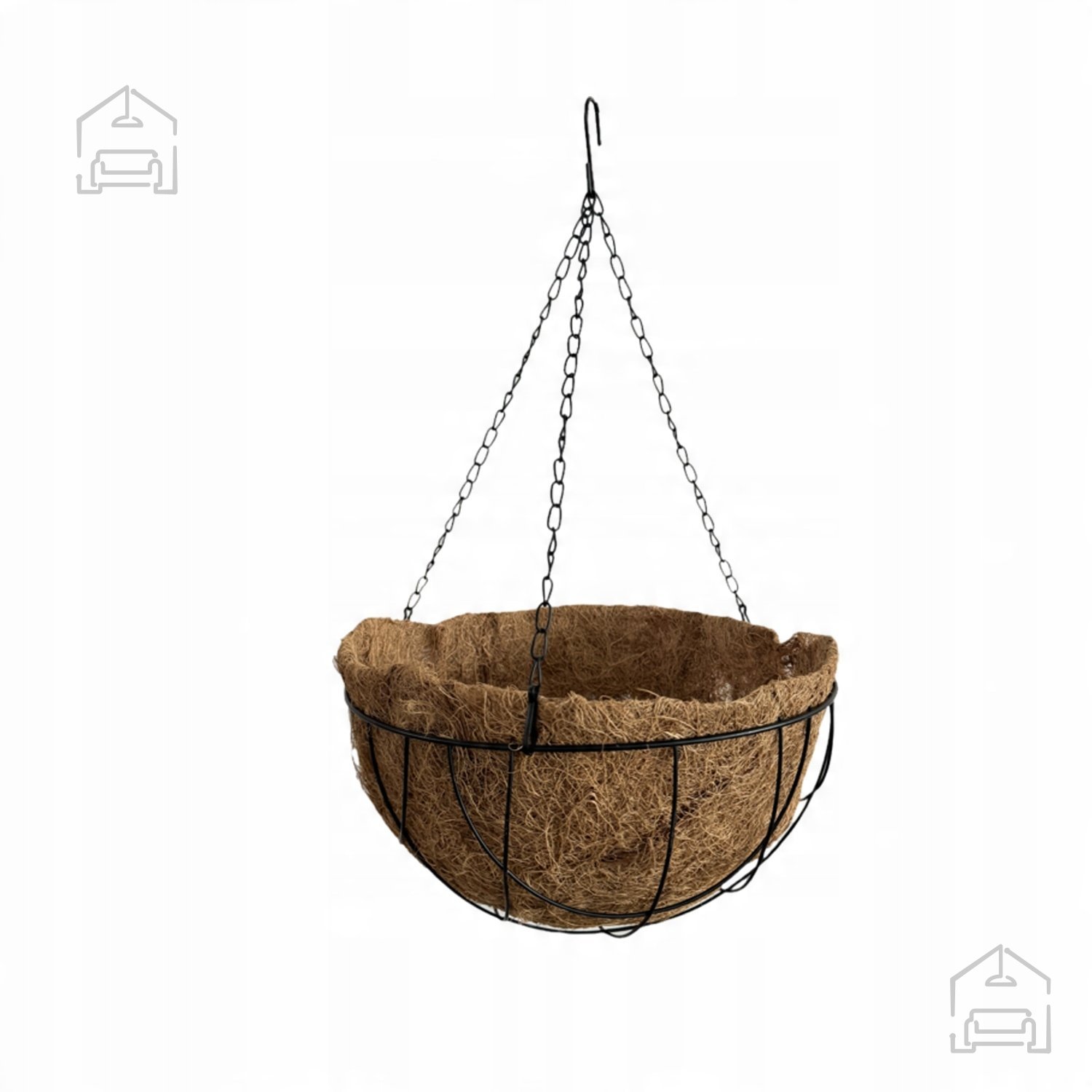 Kombinacija kovinskega okvirja in kokosovih vlaken ni le estetsko privlačna, temveč tudi izjemno funkcionalna. Kovinski okvir zagotavlja stabilnost in nosilnost, medtem ko kokosov vložek omogoča rastlinam optimalno zračenje korenin ter učinkovito zadrževanje vlage. Naravna rjava barva dopolni zunanji videz, saj se lepo ujema z zelenjem rastlin in drugimi naravnimi materiali v okolici.