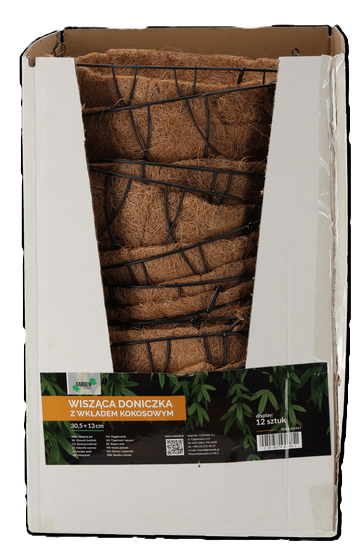 Viseča cvetlična košara z naravnim vložkom iz kokosovih vlaken je idealna izbira za vse, ki želijo na preprost način ustvariti prijetno in zeleno okolje. Kokosova vlakna so ekološki material, ki omogoča enakomerno zadrževanje vlage in dobro prezračevanje zemlje. Zaradi teh lastnosti rastline hitreje razvijajo korenine in ostajajo dalj časa sveže. Kovinski okvir zagotavlja stabilnost in trdnost, kar pomeni, da košara ohrani obliko tudi pri večji teži rastlin.