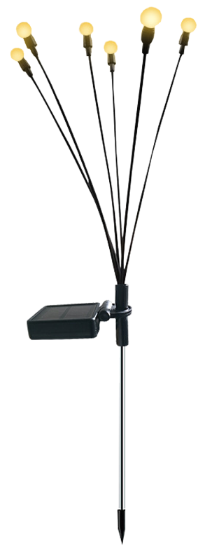 Vsaka svetilka iz kompleta je opremljena s šestimi toplimi belimi kroglami LED, ki ustvarjajo mehko, dekorativno svetlobo. Ta svetloba ni premočna, zato je primerna za ambientalno osvetlitev vrtov, poti, teras ali balkonov. Vgrajena polnilna baterija AA 300 mAh NI-MH omogoča stabilno napajanje svetilk, medtem ko sončni panel čez dan zbira energijo. Za popolno napolnjenost baterije je potrebnih približno 7–8 ur neposredne sončne svetlobe, kar zadošča za 6–7 ur delovanja v večernih urah.