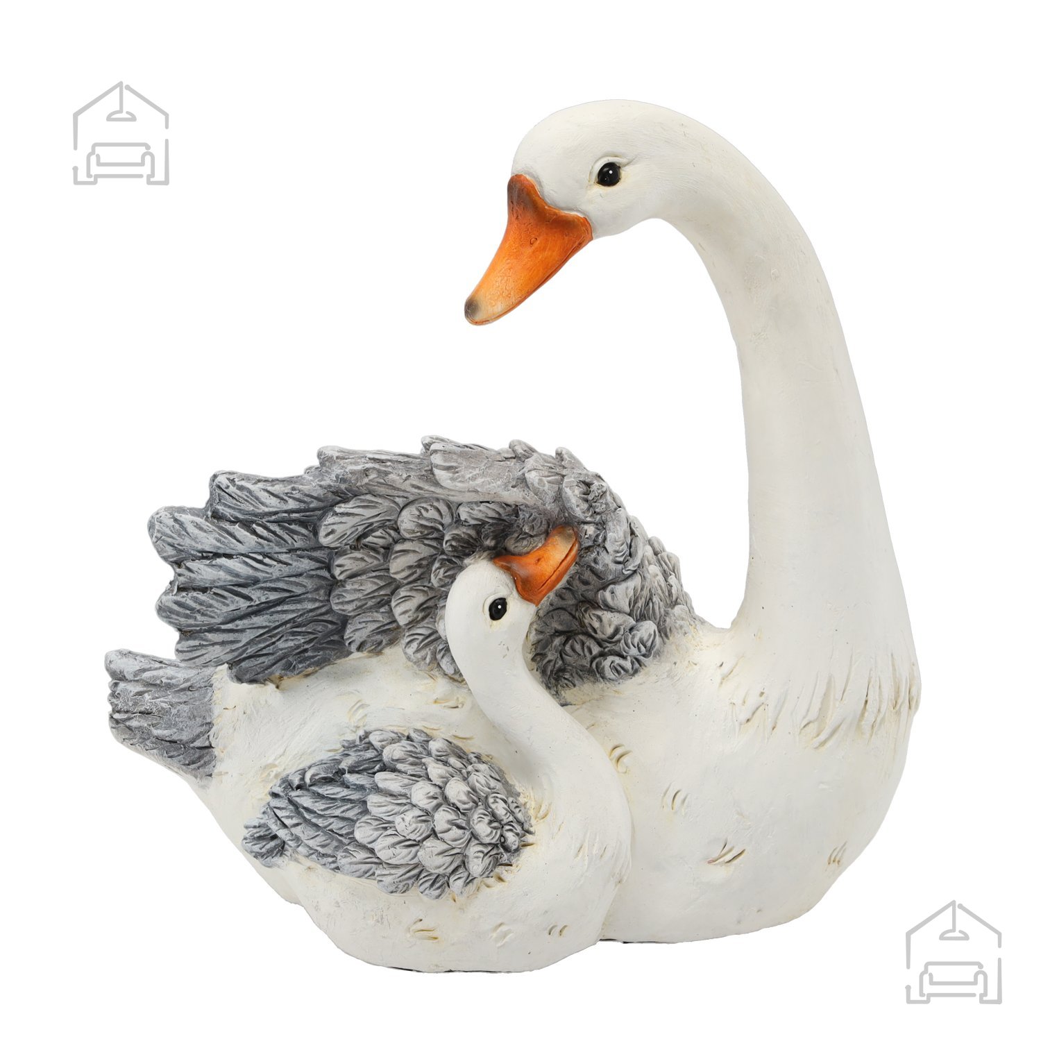 Goska z mladičem je simbol družine, zaščite in miru, zato ta kip ne prinaša le estetske vrednosti, temveč tudi prijeten simbolni pomen. Postavite ga lahko ob ribnik, vodnjak, med cvetlične lonce ali na teraso, kjer bo pritegnil pogled in dopolnil celotno kompozicijo vašega vrta. Zlasti spomladi ali poleti se bo odlično podal med sveže zelenje, pozimi pa bo v kontrastu s snegom ustvaril čarobno, skoraj pravljično vzdušje.