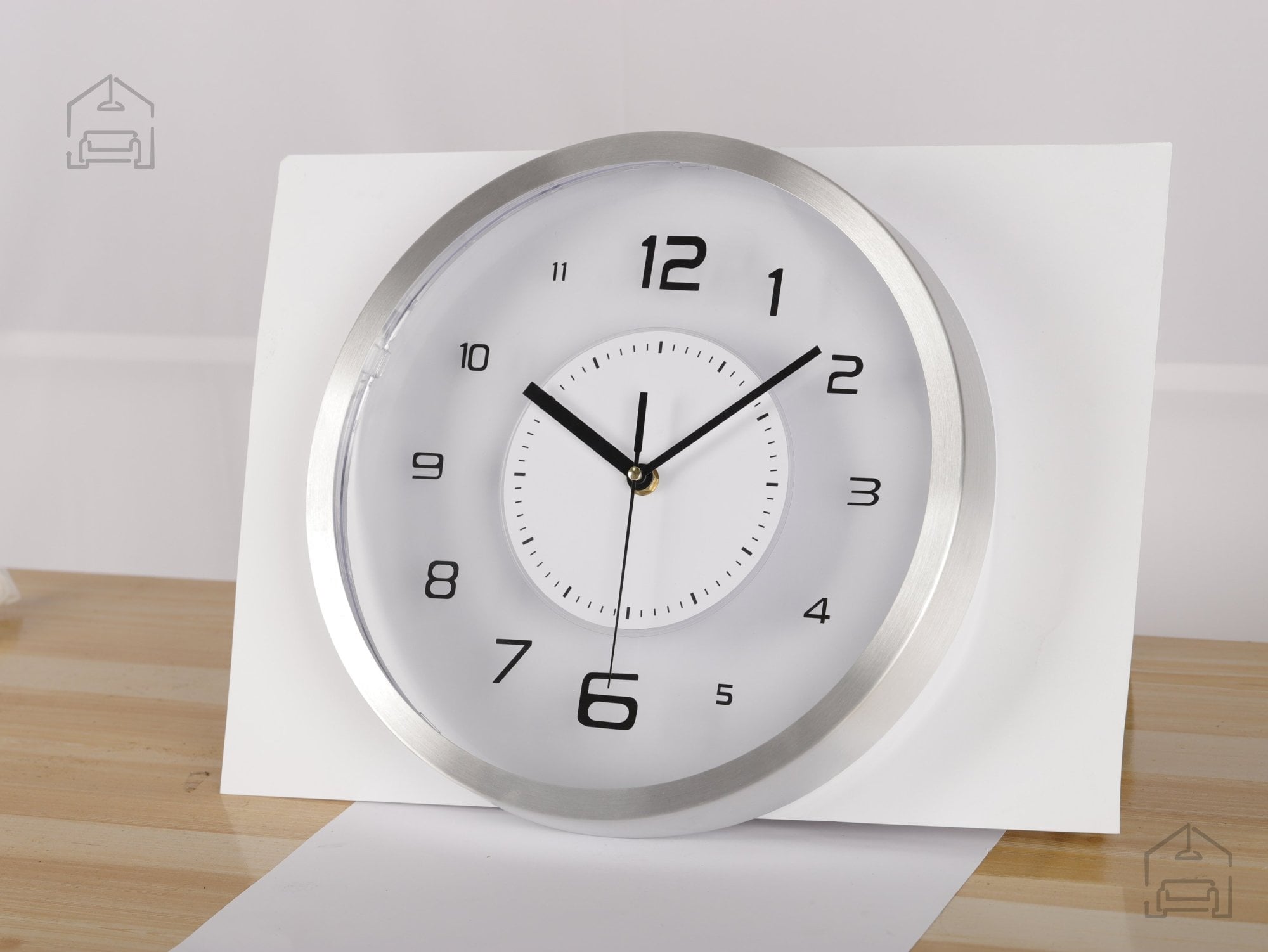 Ura se ponaša z izčiščenim videzom, ki ga odlikujejo tanke linije in kontrast med belo osnovo ter svetlečim okvirjem. Zaradi svoje nevtralne barvne kombinacije se lepo ujema z drugimi kovinskimi ali steklenimi dodatki v prostoru. Idealna je za dnevne sobe, kuhinje, hodnike ali pisarne, kjer je pomembna jasna vidljivost časa in urejen videz okolja.
