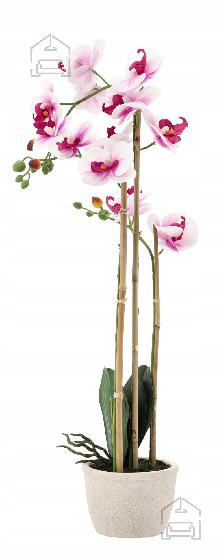 Višina 70 cm omogoča, da se umetni cvet Chomik lepo ujame z različnimi prostorskimi razmerji. V kombinaciji z drugimi umetnimi rastlinami lahko ustvarite bogate aranžmaje, ki bodo prostor zapolnili z barvo in teksturo. Prav tako jo je mogoče uporabiti kot samostojen dekorativni poudarek – na primer na jedilni mizi, nočni omarici ali v predsobi. Ker je orhideja izdelana iz kakovostne umetne mase, ostaja stabilna in ne izgublja oblike niti ob pogostem premikanju ali spreminjanju aranžmaja.