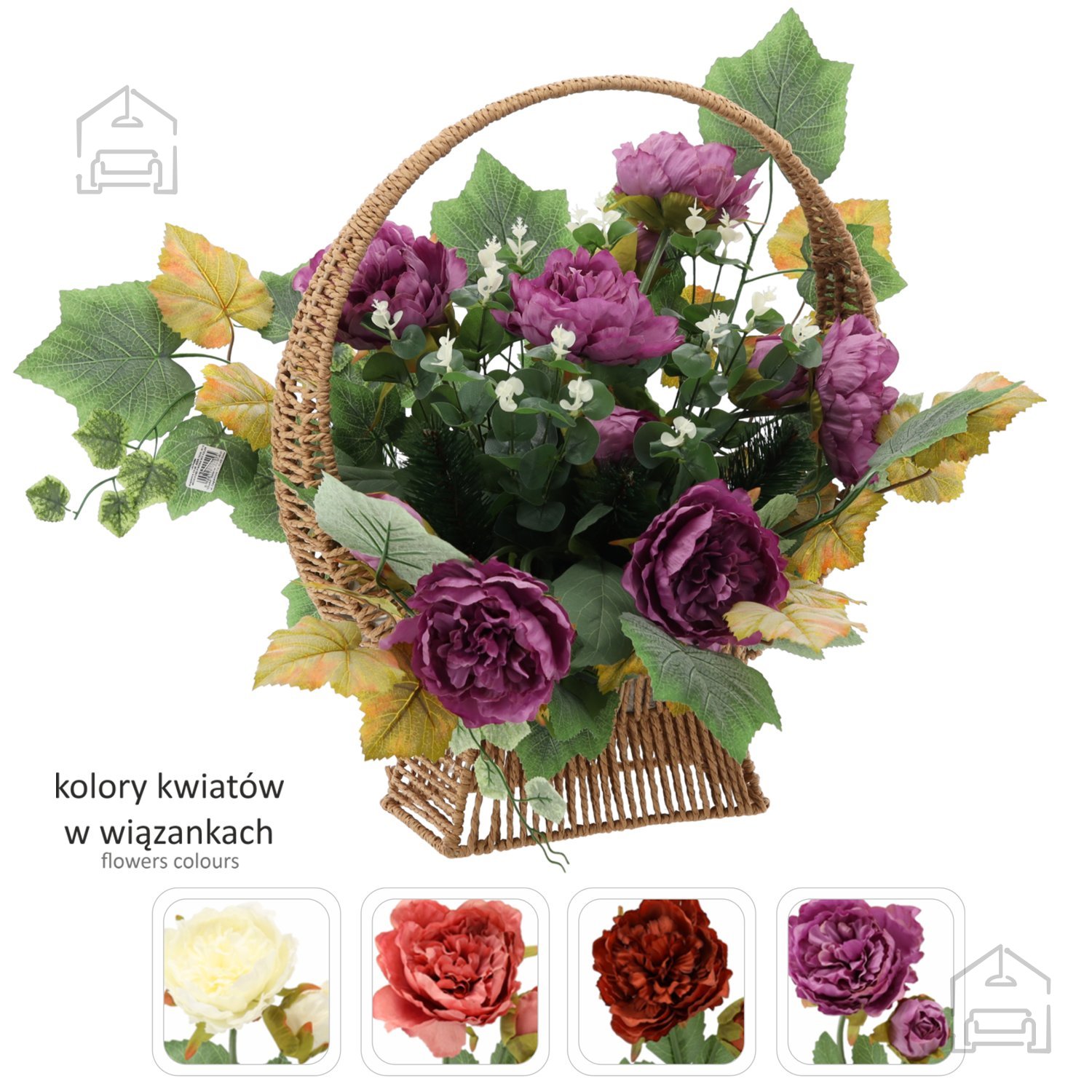 Šopek potonik v košari CH-25 – LACP4095 je zasnovan tako, da dolgo ohrani svoj videz. Primeren je za zunanjo uporabo, saj materiali in način izdelave zagotavljajo obstojnost barv ter oblik. Postavitev je preprosta – košaro lahko položite neposredno na nagrobno ploščo ali ob vznožje spomenika. Zaradi stabilne oblike in uravnotežene zgradbe šopek ostane na mestu tudi v vetrovnih razmerah. Priporočljivo je, da ga občasno očistite z mehko krpo ali z nežnim pihanjem zraka, da odstranite prah in ohranite svež videz.