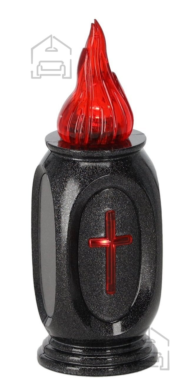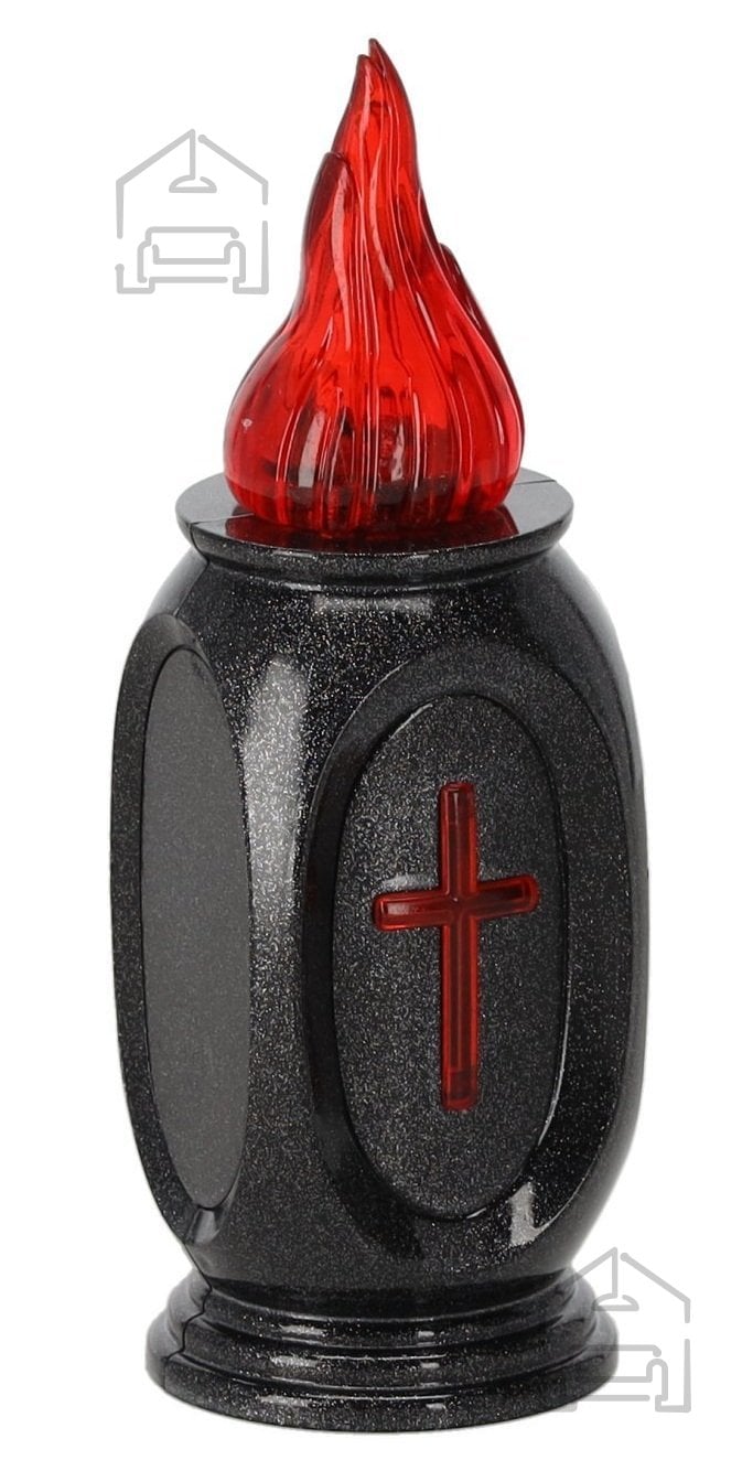 Vložek Vaso križ z LED lučko znamke Chomik predstavlja sodobno alternativo klasičnim svečam. Zasnovan je za nagrobne sveče, kjer nežna in trajna LED osvetlitev simbolizira spoštovanje, mir in trajnost spomina. Izdelek združuje granitno teksturo z rdečim poudarkom, kar ustvari eleganten videz, ki se lepo poda tako k tradicionalnim kot sodobnim nagrobnikom.