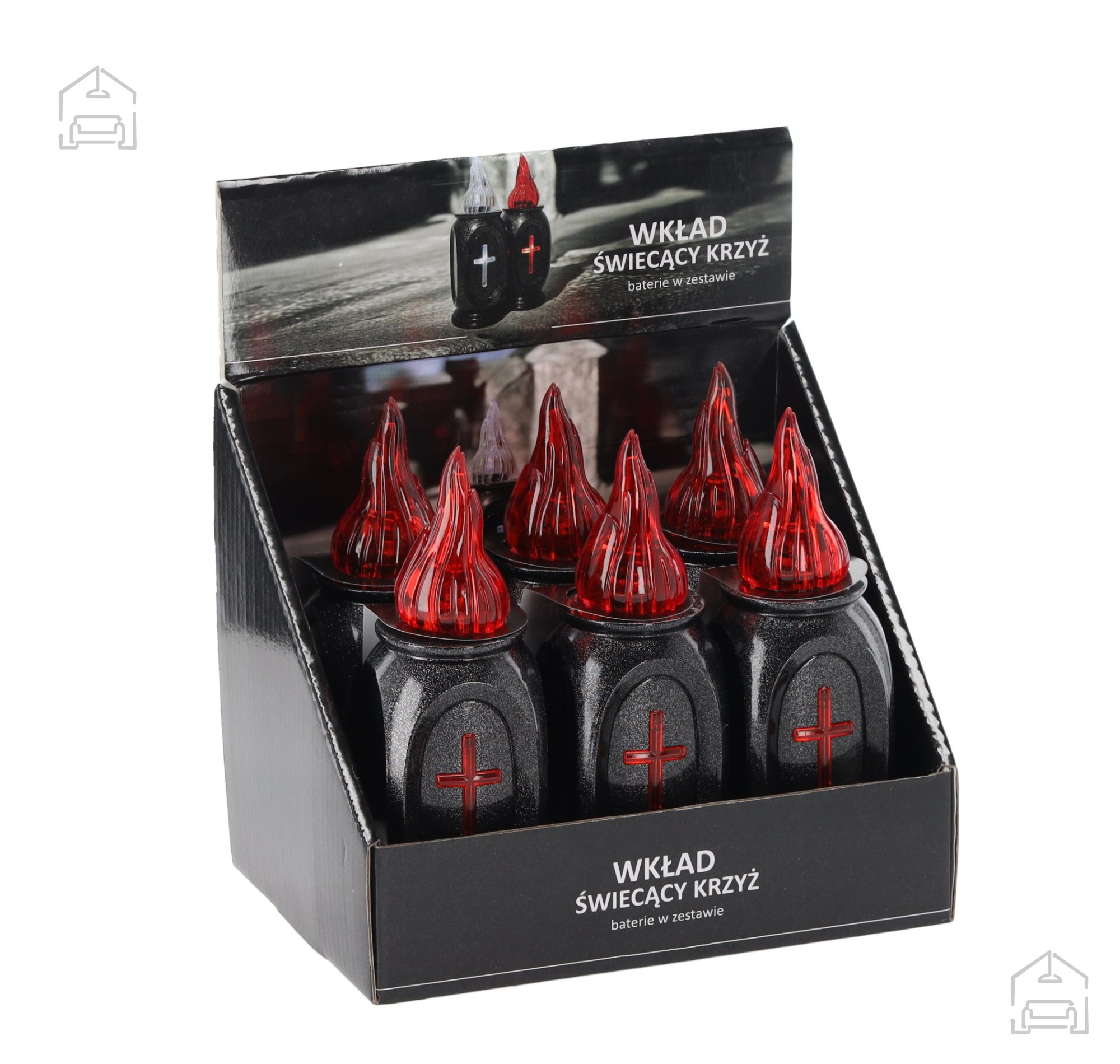 Vložek Vaso križ z LED lučko in baterijami - rdeč – Chomik združuje spoštljivo estetiko tradicionalnih sveč z napredno LED tehnologijo. Je preprost za uporabo, varčen, odporen in primeren za vse, ki želijo ohraniti spomin na svoje bližnje na sodoben, a hkrati spoštljiv način. Granitna in rdeča barvna kombinacija dodajata toplino in simbolno moč, LED svetloba pa zagotavlja miren sij, ki traja.