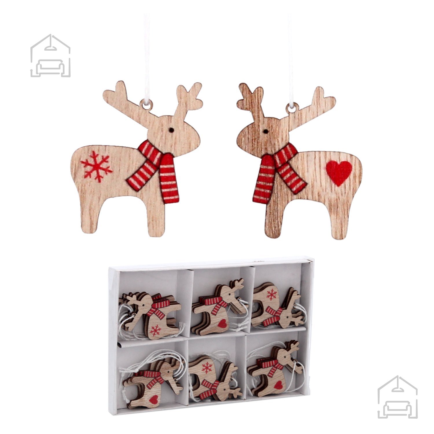 Leseni božični okraski so vedno znani po svoji toplini in trpežnosti. Material daje izdelku posebno strukturo, ki se lepo zlije z naravnimi okraski, kot so storži, suhe vejice ali tkanine iz jute. Set 18 okraskov Jeleni – Chomik je zasnovan tako, da vsak kos deluje samostojno ali kot del večje dekorativne kompozicije. Zaradi lesenega materiala so okraski lahki, ne lomljivi in primerni tudi za družine z otroki, saj ne predstavljajo nevarnosti pri padcu z drevesa.