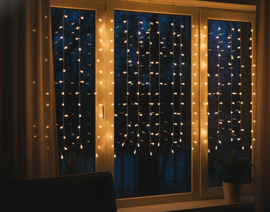 Toplo bela barva svetlobe je vsestranska in prijazna očem. Svetlobna zavesa je zato odlična izbira za božično okrasitev, poročne sprejeme, rojstnodnevne zabave, dekoracijo izložb ali ambient v dnevni sobi. Zaradi svoje dolžine in razmerja med širino ter višino se lepo prilega oknom, steklenim stenam ali ozadjem za fotografiranje.