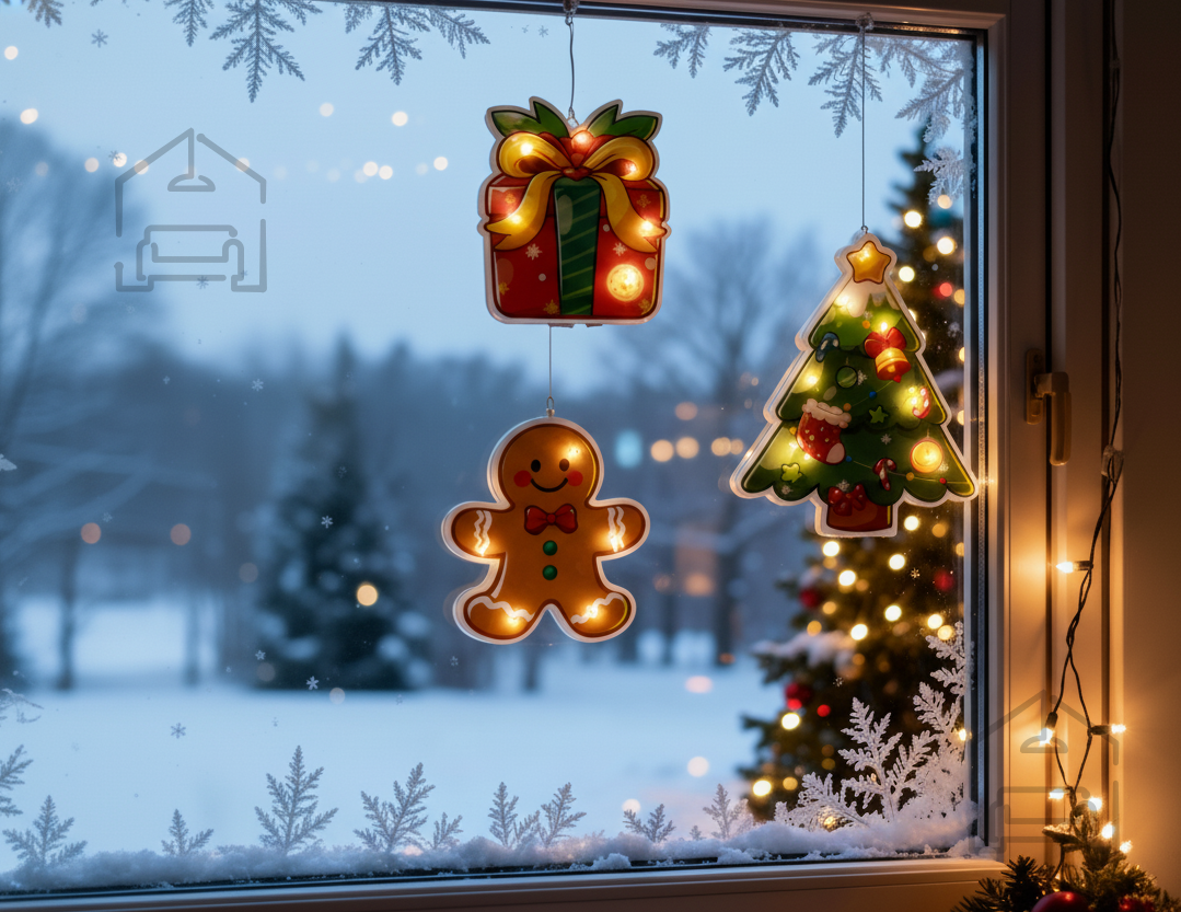 Namestitev prazničnih gel nalepk je preprosta in ne zahteva dodatnih orodij. Površino pred nanosom obrišite, da zagotovite dobro oprijemljivost. Nalepko nežno pritisnite na steklo in vklopite LED lučko s pomočjo baterije CR2032. Ko se prazniki končajo, nalepko odstranite, očistite z vlažno krpo in shranite v suhem prostoru za naslednjo sezono. Zaradi zaščite IP20 so nalepke namenjene izključno notranjim prostorom – okna, vitrine, ogledala ali steklene pregrade.