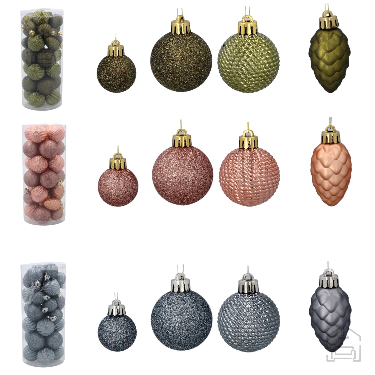 Ne glede na to, ali iščete popoln dodatek za praznično okrasitev ali subtilen dekorativni element za vsakdan, bo ta komplet 31 kroglic prava izbira. Z njimi lahko hitro in enostavno ustvarite prijetno atmosfero, ki izraža vaš osebni slog in občutek za detajl.