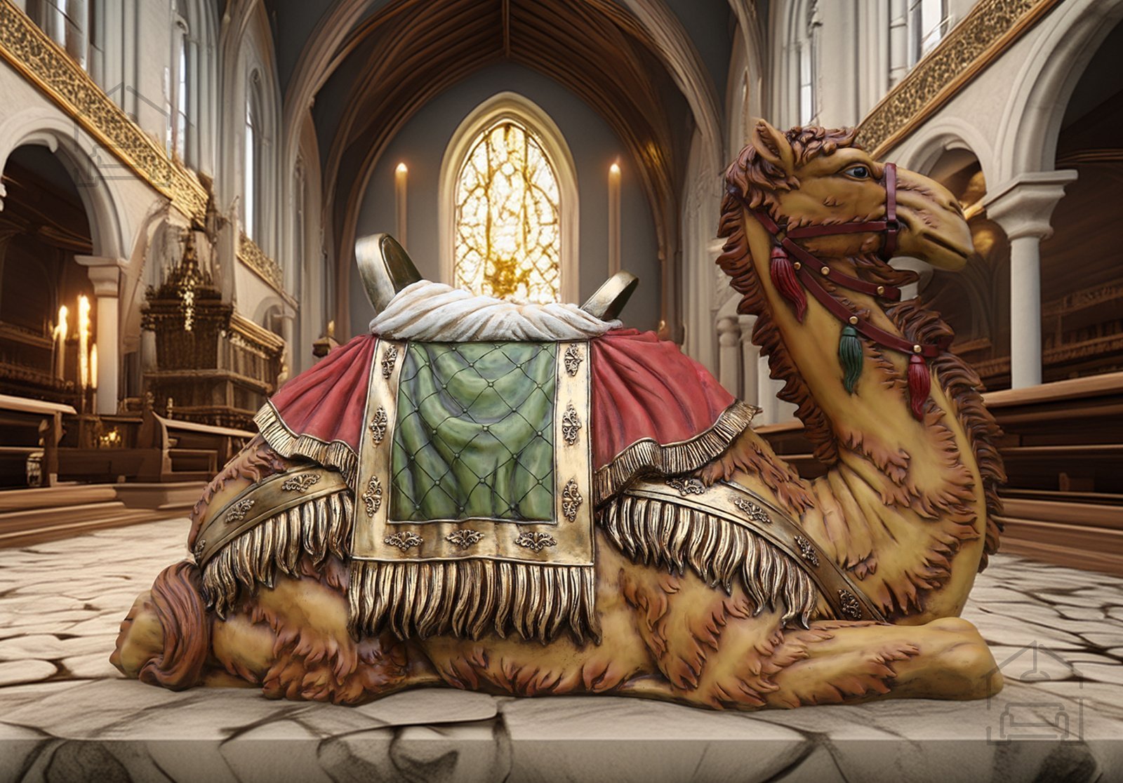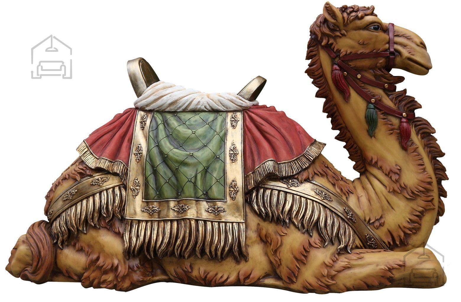 Čudovita figura klečečega velbloda znamke Chomik je dekorativni kos, ki združuje umetelno izdelavo, trpežne materiale in naravno barvno paleto. Izdelana je iz kakovostne poliestrne smole v kombinaciji z mavcem, kar ji daje stabilnost in odpornost na zunanje vplive. Figura meri 145x56x86 cm in s svojo impresivno velikostjo pritegne pozornost v vsakem prostoru – bodisi v notranjih ambientih, kot so cerkve ali galerije, bodisi v zunanjih postavitvah, na primer v vrtovih ali jaslicah.