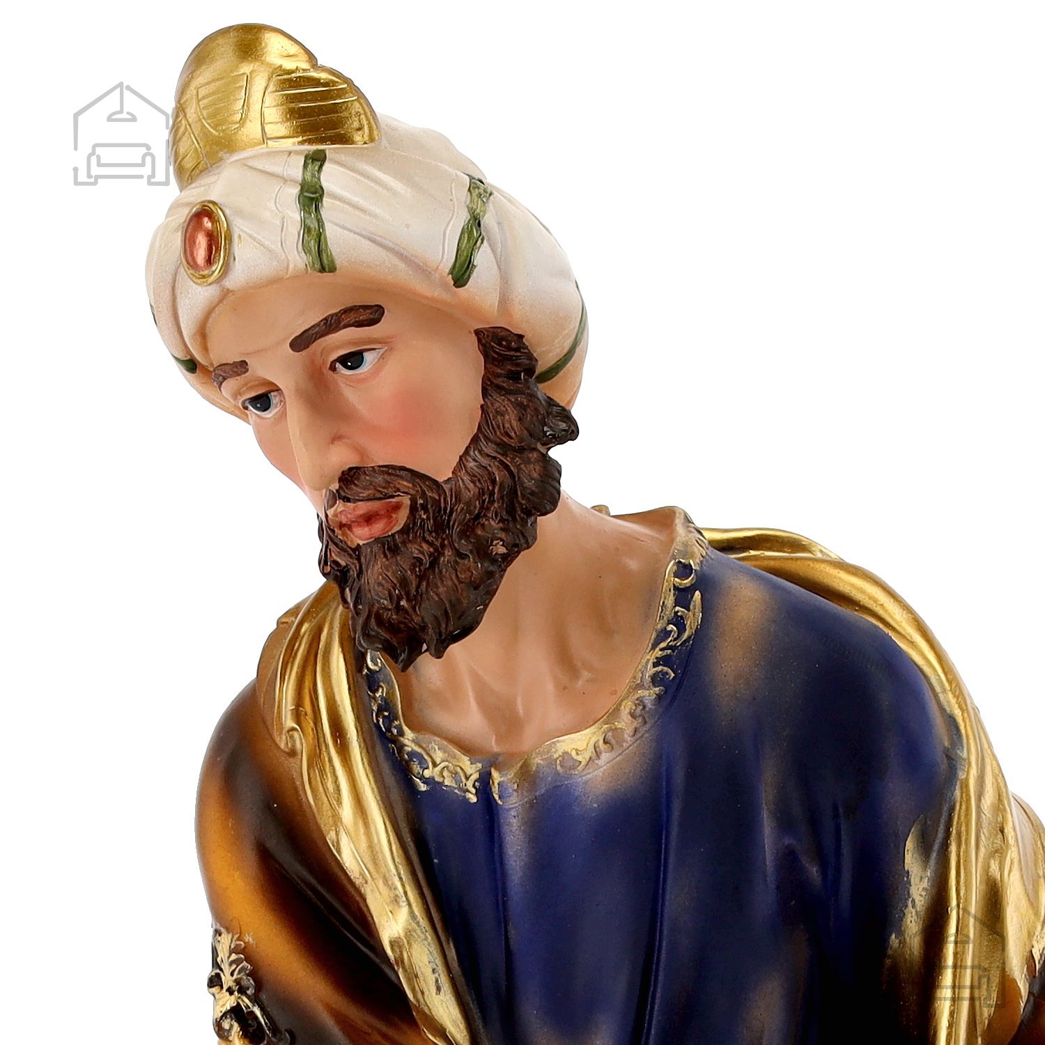 Poli-resin je sodoben kompozitni material, ki se pogosto uporablja za izdelavo dekorativnih elementov, saj omogoča natančno oblikovanje in visoko stopnjo detajliranosti. V primerjavi s tradicionalnimi materiali, kot sta keramika ali les, je poli-resin lažji, odpornejši na vlago in temperaturne spremembe ter enostaven za čiščenje. Površina figur je lahko premazana z zaščitnim lakom, ki dodatno ščiti barvni nanos in ohranja njihov sijaj skozi več sezon uporabe.