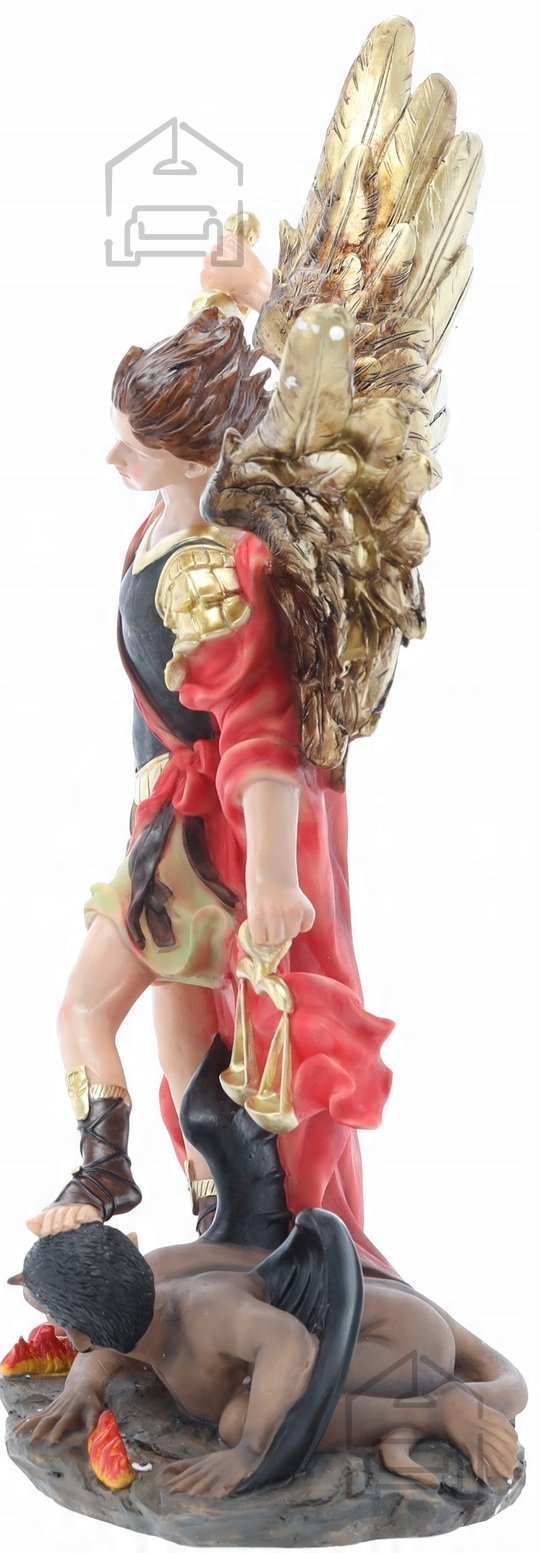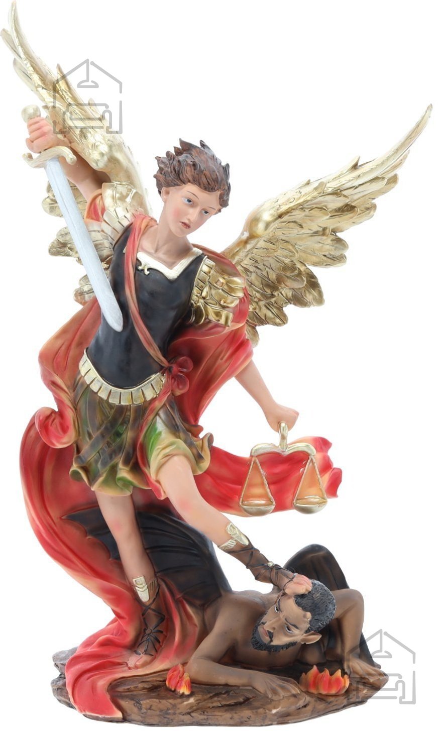 Nadangel Mihael je v umetnosti pogosto upodobljen kot varuh in zmagovalec nad zlom, kar daje figurici globok simbolni pomen. Njegova drža, razprta krila in natančno oblikovani detajli izražajo moč, odločnost in duhovno čistost. V verskih in umetniških prostorih figurica deluje kot navdihujoč element, v domovih pa kot zaščitni simbol, ki ustvarja občutek miru in varnosti. Uporabniki jo pogosto postavijo v predsobe, dnevne sobe ali molitvene kotičke, kjer služi kot opomnik poguma in vere. Zaradi odpornosti materiala je primerna tudi za vrtne kapelice, terase ali druge zunanje površine, kjer ostane čudovita skozi vse leto.