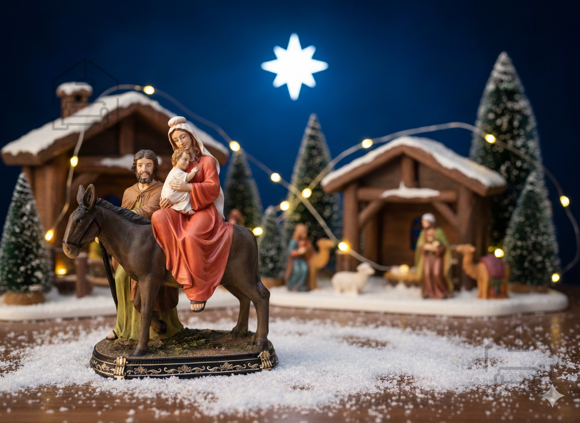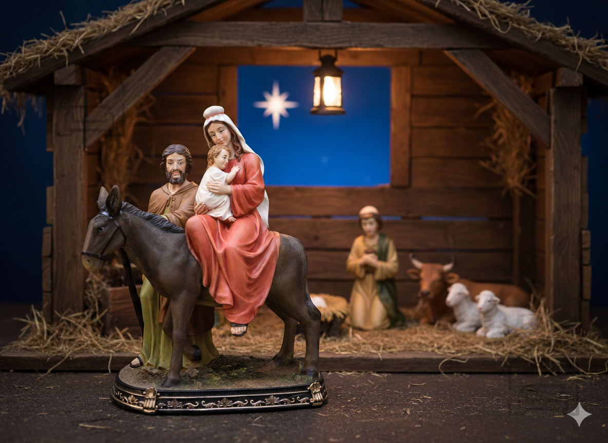 Poleg tehničnih lastnosti figura nosi tudi močno simbolno sporočilo. Prikazuje trenutek poti Marije, Jožefa in novorojenega Jezusa, kar jo dela osrednji element pri božičnih postavitvah. Njen miren izraz in nežna kompozicija spominjata na pomen družine, vere in upanja, ki so bistvo božičnih praznikov. Zaradi tega je izdelek primeren tako za verske ustanove kot za zasebne zbiratelje ali dekorativne koncepte z versko tematiko.