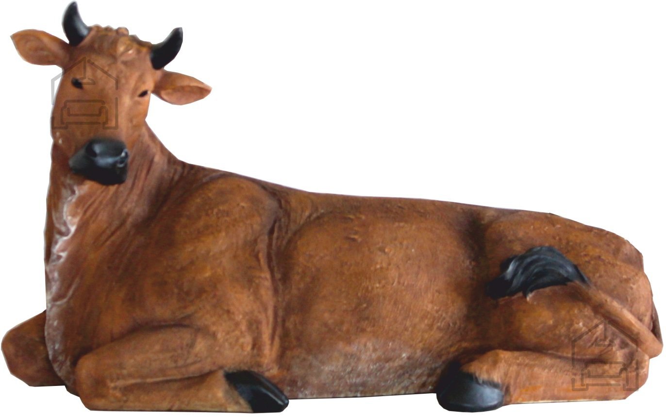 Ta skrbno izdelana figura krave prikazuje žival v ležečem položaju – mirno, z naravnim izrazom na obrazu in verno upodobljeno teksturo dlake. Podrobnosti, kot so mehki prehodi barv in nežno senčenje, ji dajejo realističen videz, ki bo navdušil vsakega ljubitelja tradicionalnih jaslic.