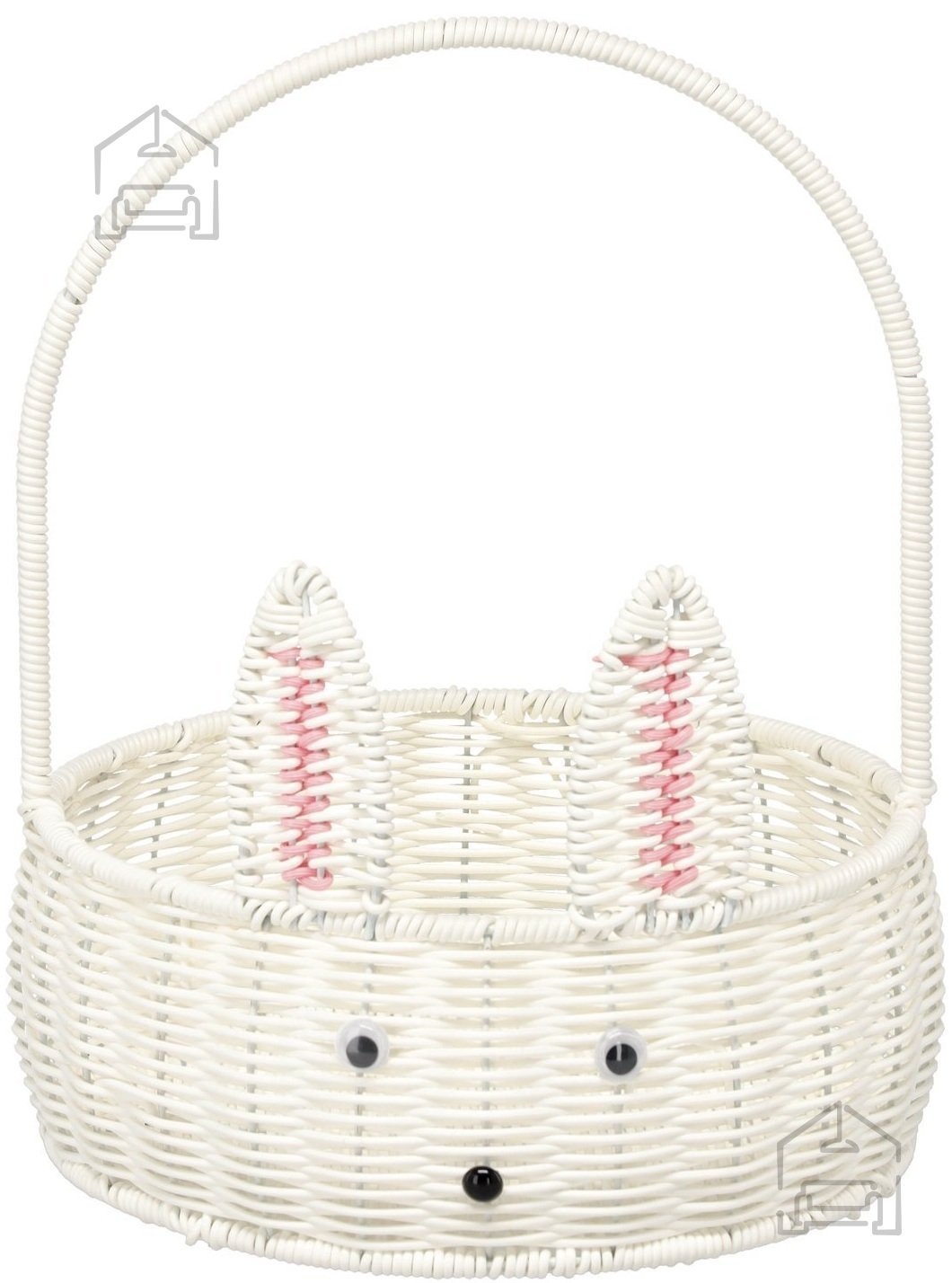 Izdelek je v beli barvi, ki prinaša občutek čistosti, svetlobe in zračnosti. Motiv belega zajčka na površini dodaja košari nežnost in igrivost. Ta kombinacija barve in motiva jo naredi privlačno izbiro za prostore, kjer želite ustvariti prijetno in sproščeno vzdušje – še posebej v otroških sobah ali prostorih z nežno barvno paleto.