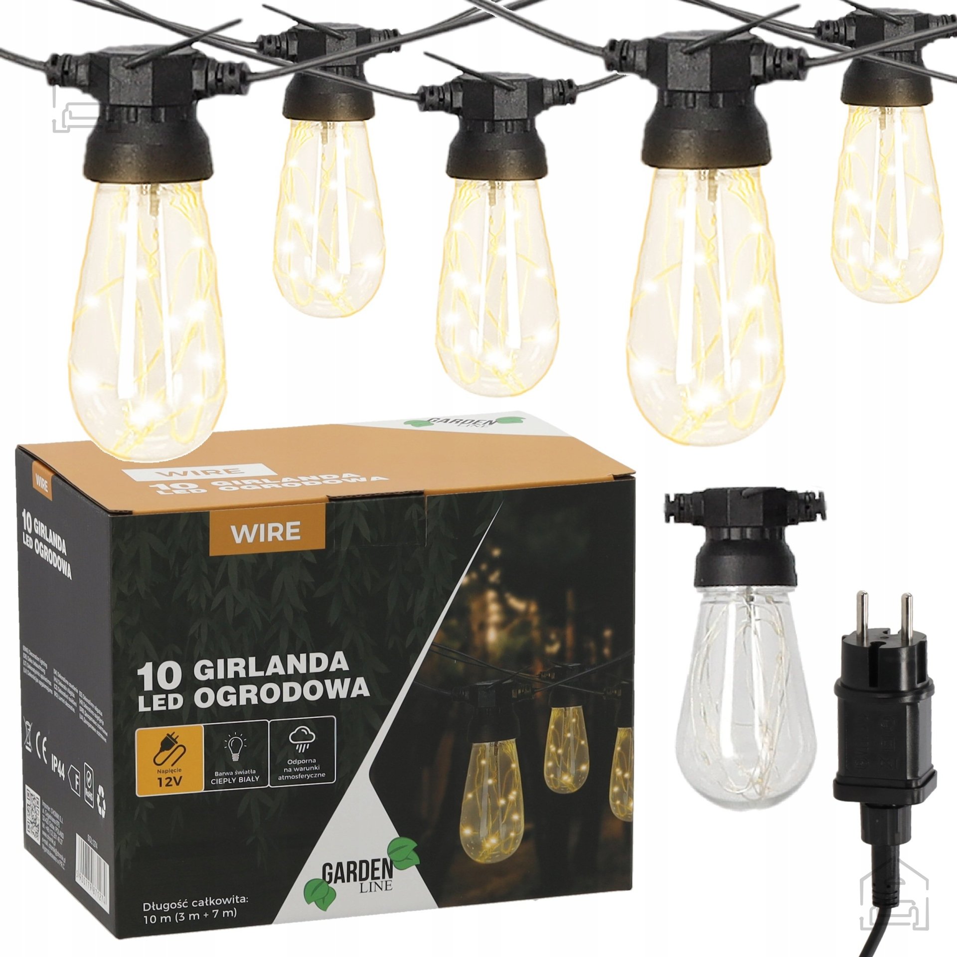 Vrtna girlanda dolžine 10 metrov je popolna za okrasitev balkona, terase ali vrta. Opremljena je z 10 energijsko varčnimi LED žarnicami v toplo beli barvi (3000K), ki ustvarjajo prijetno in sproščeno osvetlitev za poletne večere. Zahvaljujoč držalom za obešanje je montaža hitra in preprosta. Girlanda se ponaša z modernim, a hkrati klasičnim dizajnom, ki se odlično ujema z različnimi stili notranje in zunanje opreme. Njena vodoodpornost (IP44) zagotavlja odpornost na različne vremenske razmere, kar pomeni dolgo življenjsko dobo in zanesljivo delovanje.