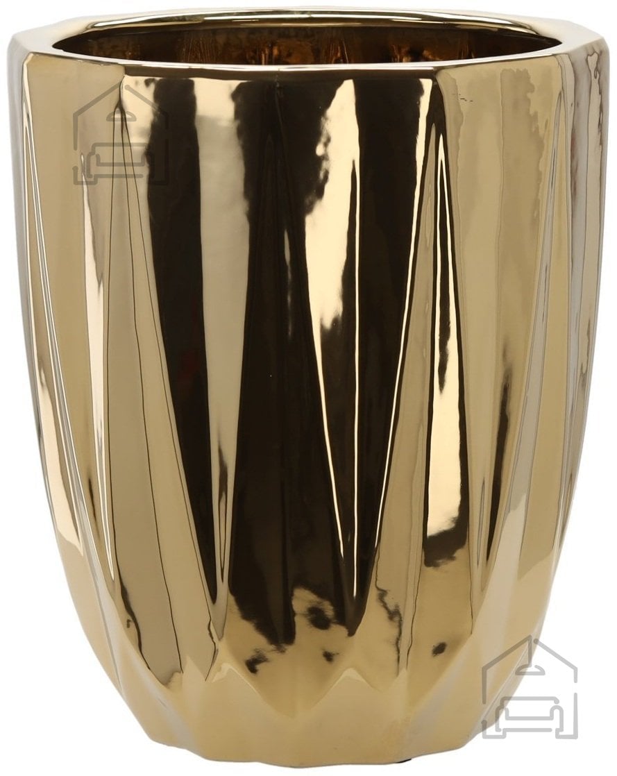 Elegantni keramični okrasni lonček v sijoči zlati barvi je odličen dodatek k notranji opremi. Njegova subtilno rebrasta površina daje zanimivo teksturo, sijoča obdelava pa čudovito odbija svetlobo. Navpični utori poudarjajo njegov edinstven značaj in dodajo sodoben videz. Lonček je izdelan iz trpežne keramike, zato je čvrst in odporen na poškodbe. Odlično se poda tako k zelenim rastlinam kot k lončnicam, saj poudari njihovo naravno lepoto. Primeren je za notranje prostore v različnih slogih.