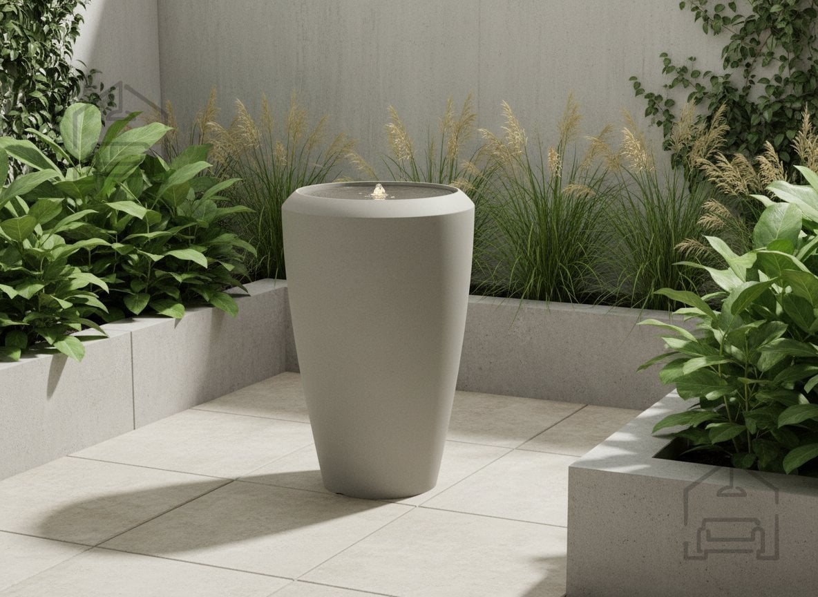 Vrtna fontana z elegantno površinsko obdelavo je stilski dekorativni element vsake zunanje površine. Njena preprosta oblika in umirjena barvna paleta omogočata, da se popolno ujema z različnimi ureditvami. Nežen vodni curek, ki teče iz zgornjega dela, ustvarja sproščujoče vzdušje in subtilen zvočni učinek. Idealna je za vrtove in terase.