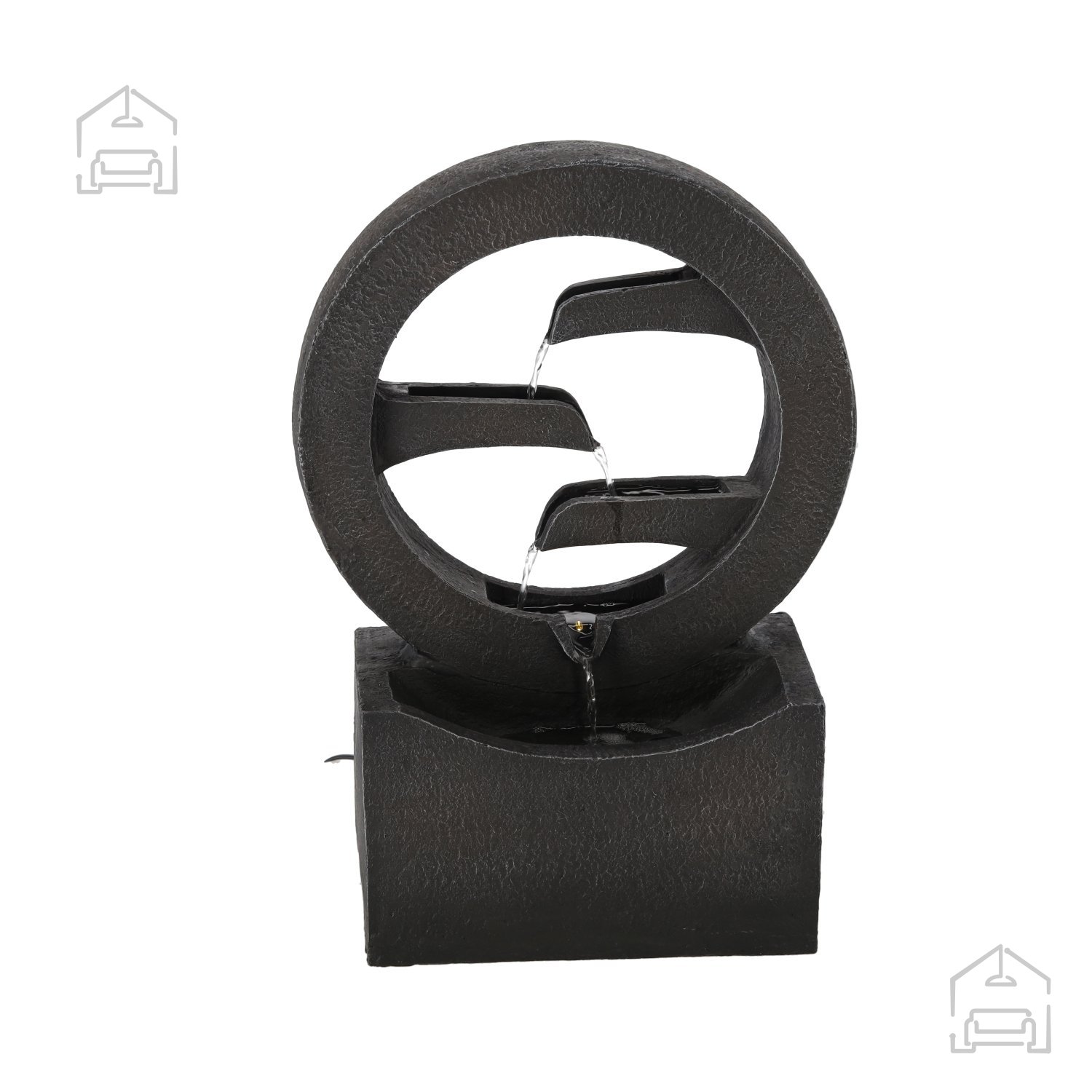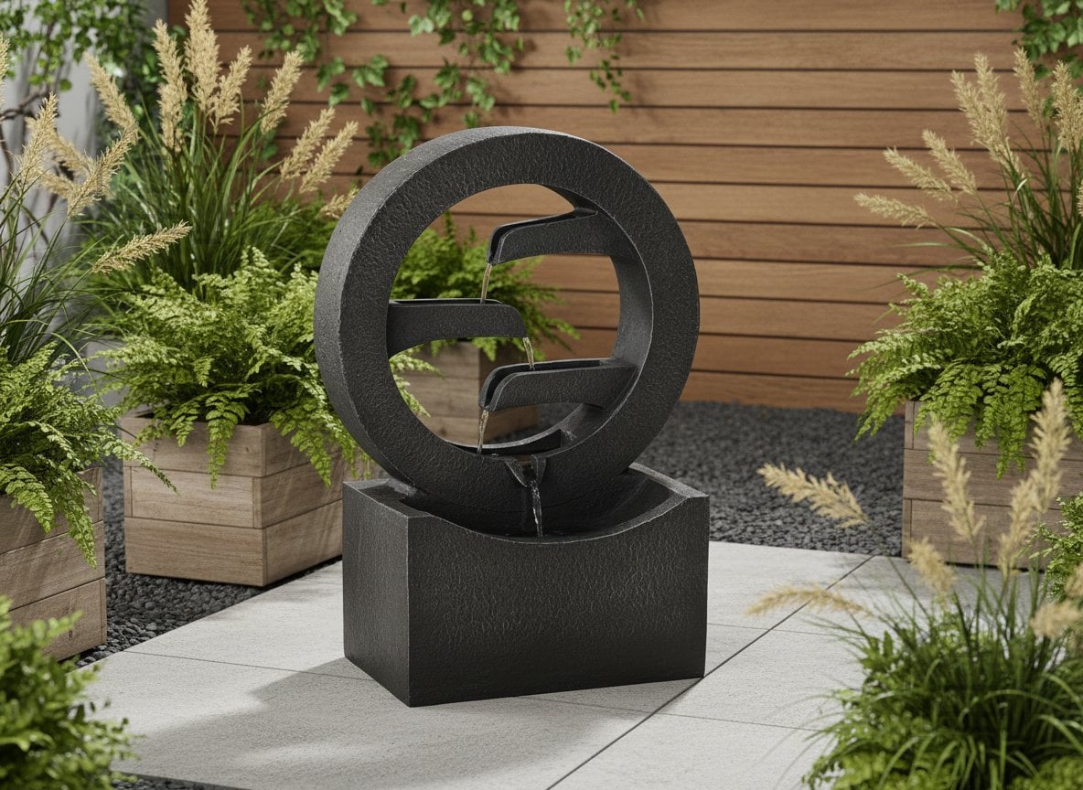 Vrtna fontana pierścień LED blagovne znamke Chomik je dekorativni element, ki združuje sodobno obliko z umirjenim učinkom tekoče vode. Zahvaljujoč svojim kompaktnim dimenzijam 34x16x47,8 cm jo je mogoče enostavno umestiti na teraso, balkon, vrtno mizo ali v notranji prostor z naravno svetlobo. Črna barva ohišja omogoča, da se fontana estetsko zlije z različnimi vrstami zunanje opreme, od lesenih miz do kamnitih plošč in kovinskih dodatkov.