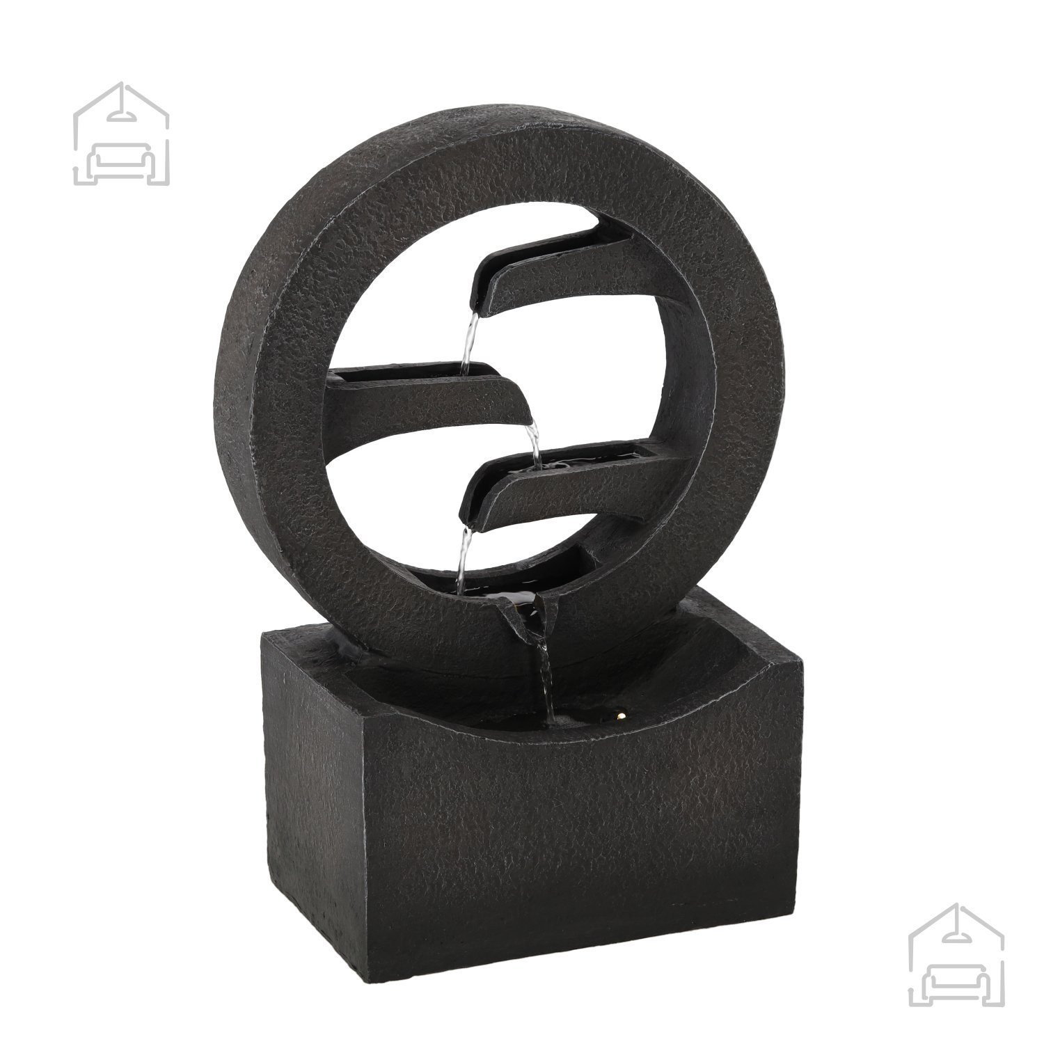 Fontana je opremljena z LED osvetlitvijo, ki poudari gibanje vode in ustvari prijetno atmosfero v večernih urah. Svetlobni učinek ne le izboljša vizualni vtis, temveč tudi prispeva k občutku sprostitve. Zaradi LED tehnologije je poraba energije minimalna, kar pomeni daljšo življenjsko dobo in manj vzdrževanja. Uporabnik lahko fontano uporablja kot ambientalno svetlobo med večernim počitkom na vrtu ali kot diskreten okrasni element v notranjosti doma.