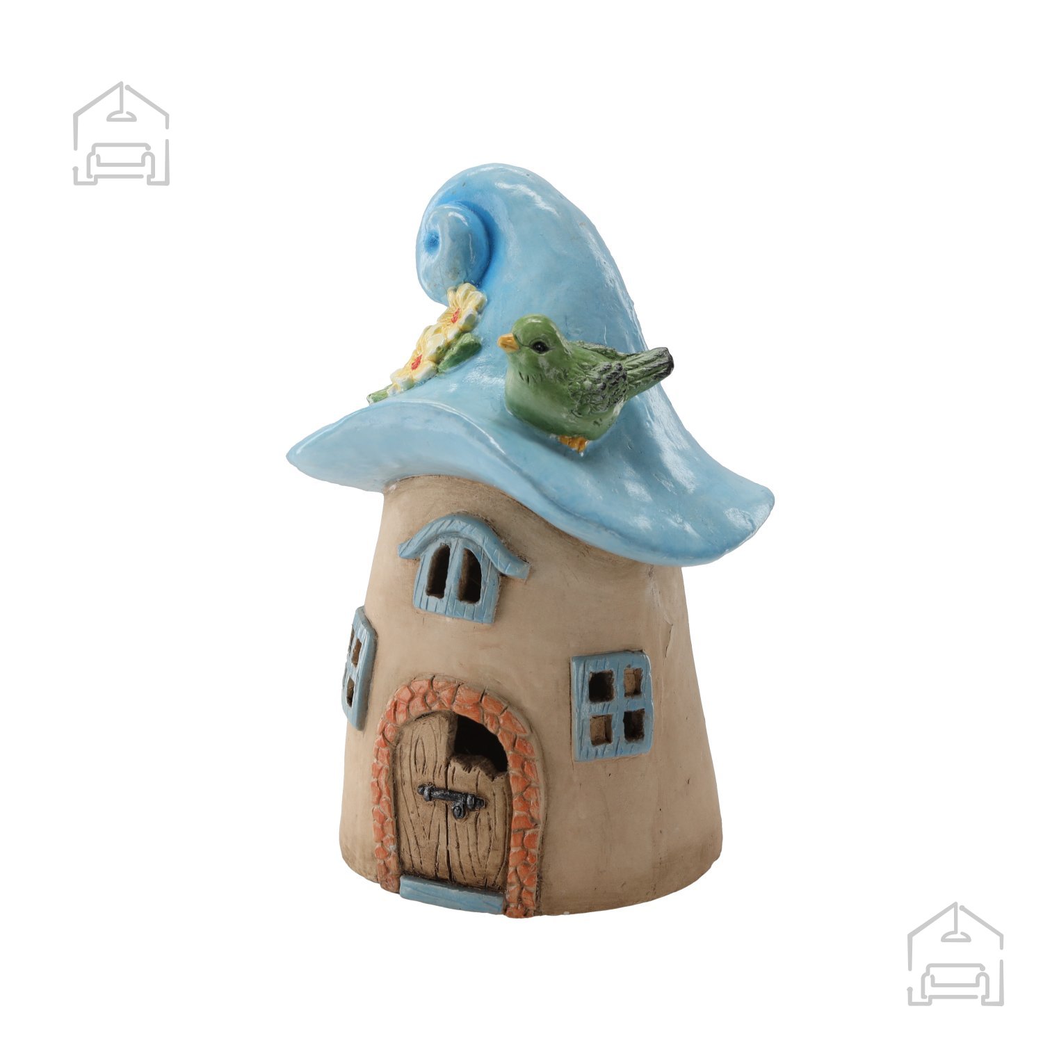 Vrtna figurica Modra gobica hišica LED – GOT7065 združuje igriv dizajn in uporabno funkcionalnost. Njena oblika spominja na pravljico, kjer se lahko skriva drobna bitja ali vilinske zgodbe. Detajli, kot so streha v obliki gobice, okenca in vrata, so izdelani z občutkom za estetiko in trajnost. Zaradi modre barve se figurica lepo ujema z različnimi vrstami rastlin, predvsem z belimi, rumenimi ali vijoličnimi cvetovi, ki njeno barvo še poudarijo.