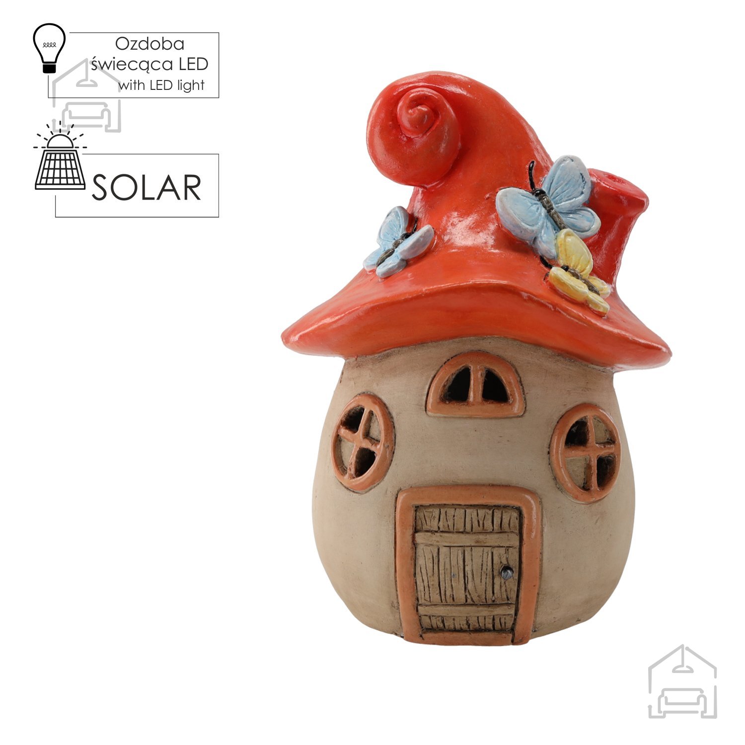 Vrtna figurica meri 22,6 × 21 × 30,9 cm in je ravno prav velika, da jo lahko postavite med rože, ob vrtno pot ali na mizo na terasi. Njena oblika prikupne gobe z majhnimi detajli hišice pritegne poglede tako podnevi kot ponoči. Mehka LED svetloba, ki se ponoči samodejno prižge, ustvari prijetno vzdušje in poudari strukturo figure.