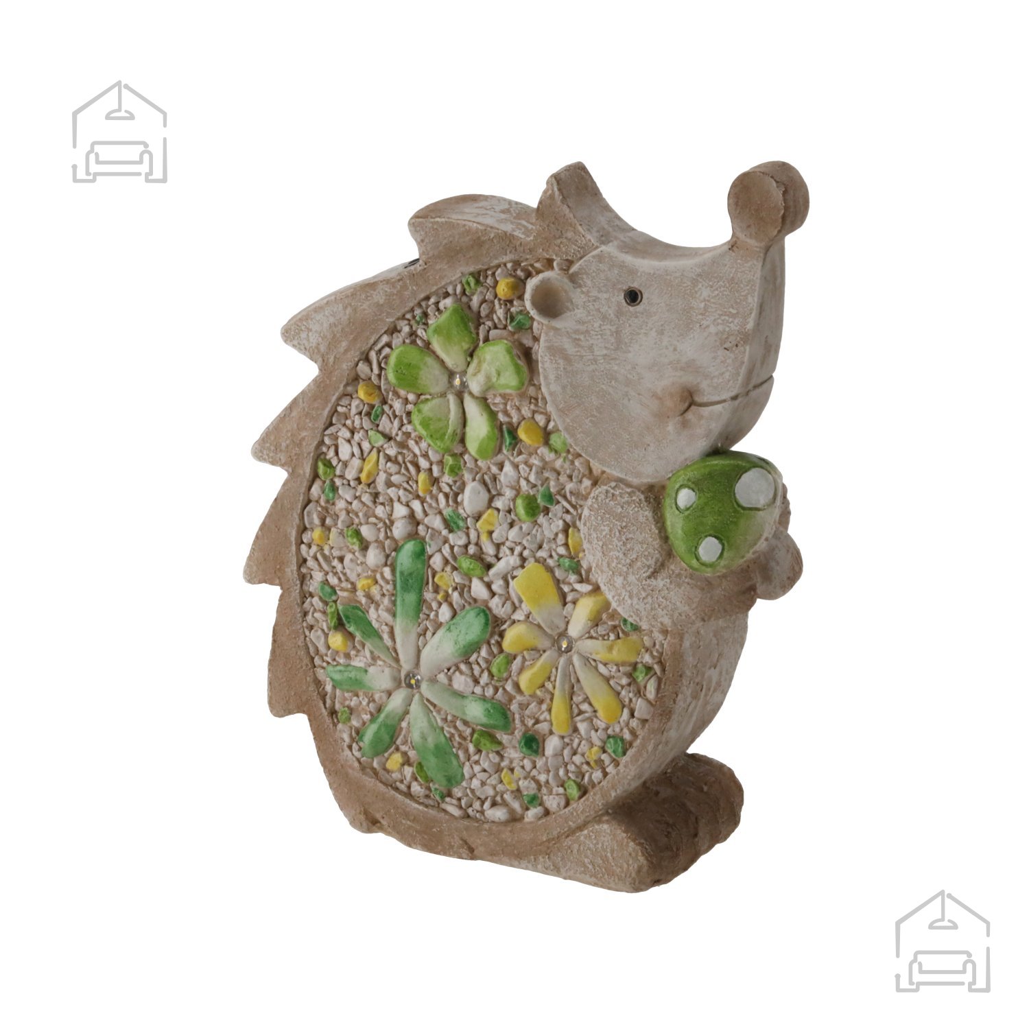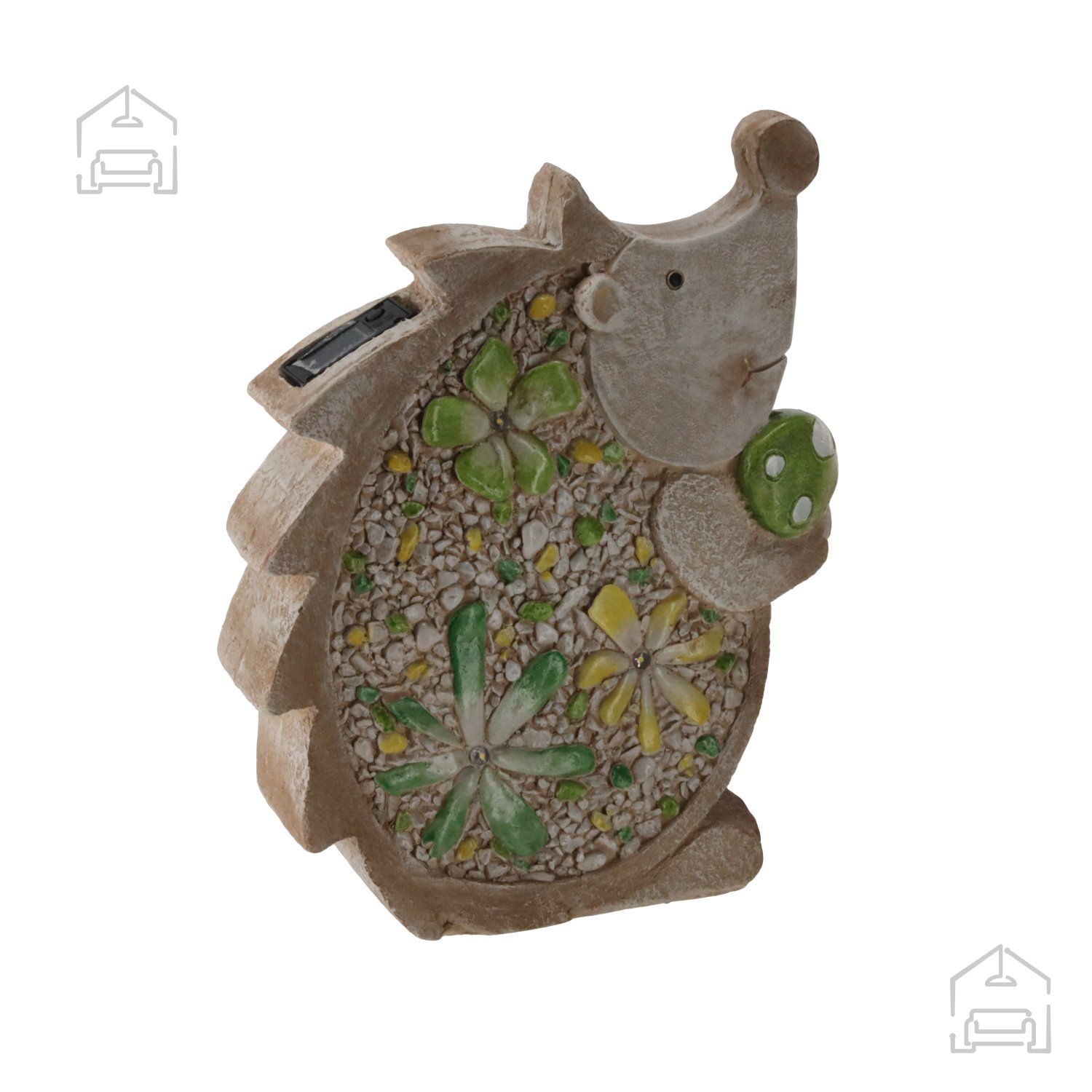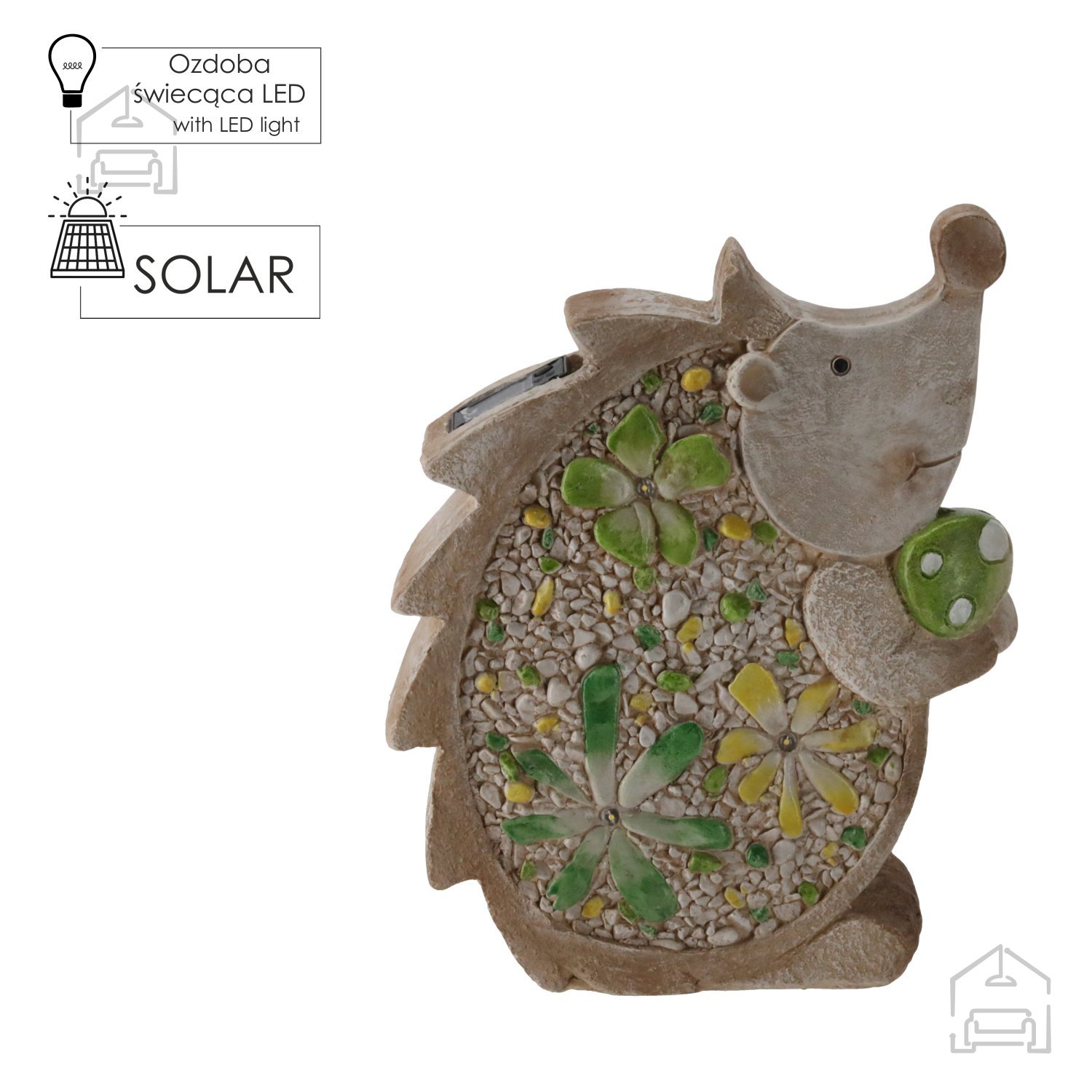 Vrtna figurica – ploščati jež LED – Chomik prinaša pridih igrivosti in topline v vsak zunanji prostor. Z združitvijo dekorativne oblike in nežne osvetlitve ustvarja prijetno točko pozornosti, ki se lepo dopolnjuje z naravnimi elementi okolice. Zaradi svoje velikosti in barvne nevtralnosti se enostavno kombinira z drugimi vrtnimi dodatki in omogoča ustvarjanje harmoničnega, osebnega vrta.