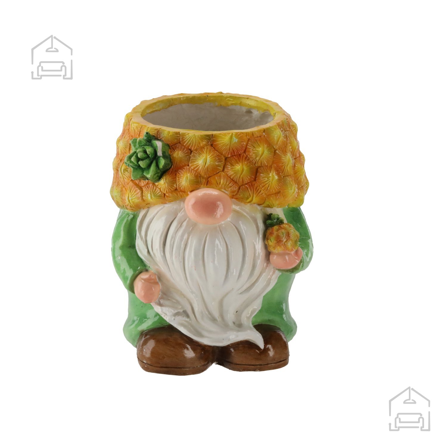 Vrtni lonec – Palček z ananasom – GOT7409 je izdelek poljskega proizvajalca Chomik, ki se ponaša z dolgoletno tradicijo izdelave okrasnih predmetov in dodatkov za dom. Izdelava v evropskem okolju zagotavlja usklajenost s standardi kakovosti in varnosti, kar pomeni, da je izdelek primeren tako za notranjo kot zunanjo uporabo. Vsak lonec je izdelan s pozornostjo do detajlov, kar je razvidno v natančno izoblikovanih potezah palčka in teksturi ananasa.