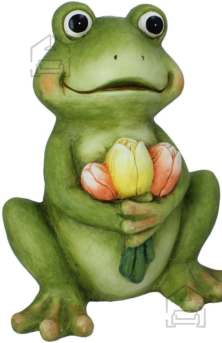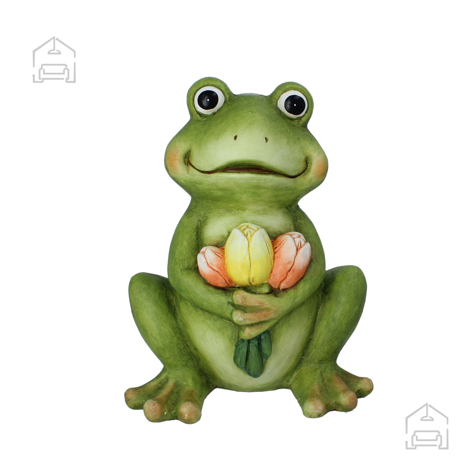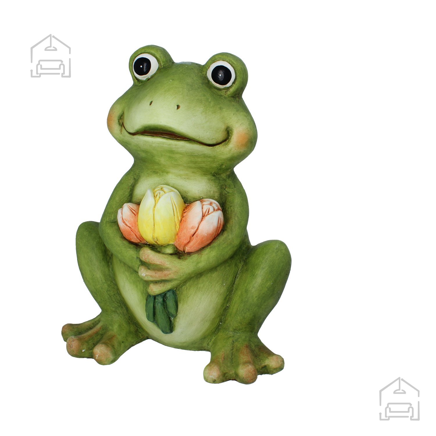 Žabe so pogosto povezane s srečo in harmonijo, zato je ta figura lahko tudi odlično darilo za ljubitelje narave ali tiste, ki radi urejajo svoj vrt. Zaradi svoje prijazne in igrive oblike prinaša nasmeh in toplino v vsak prostor, kjer je postavljena. Tulipani, ki jih žaba drži v rokah, dodajo pridih romantike in spomladanske svežine, zato figura ni primerna le za poletne mesece, temveč tudi kot trajna dekoracija skozi vse leto.