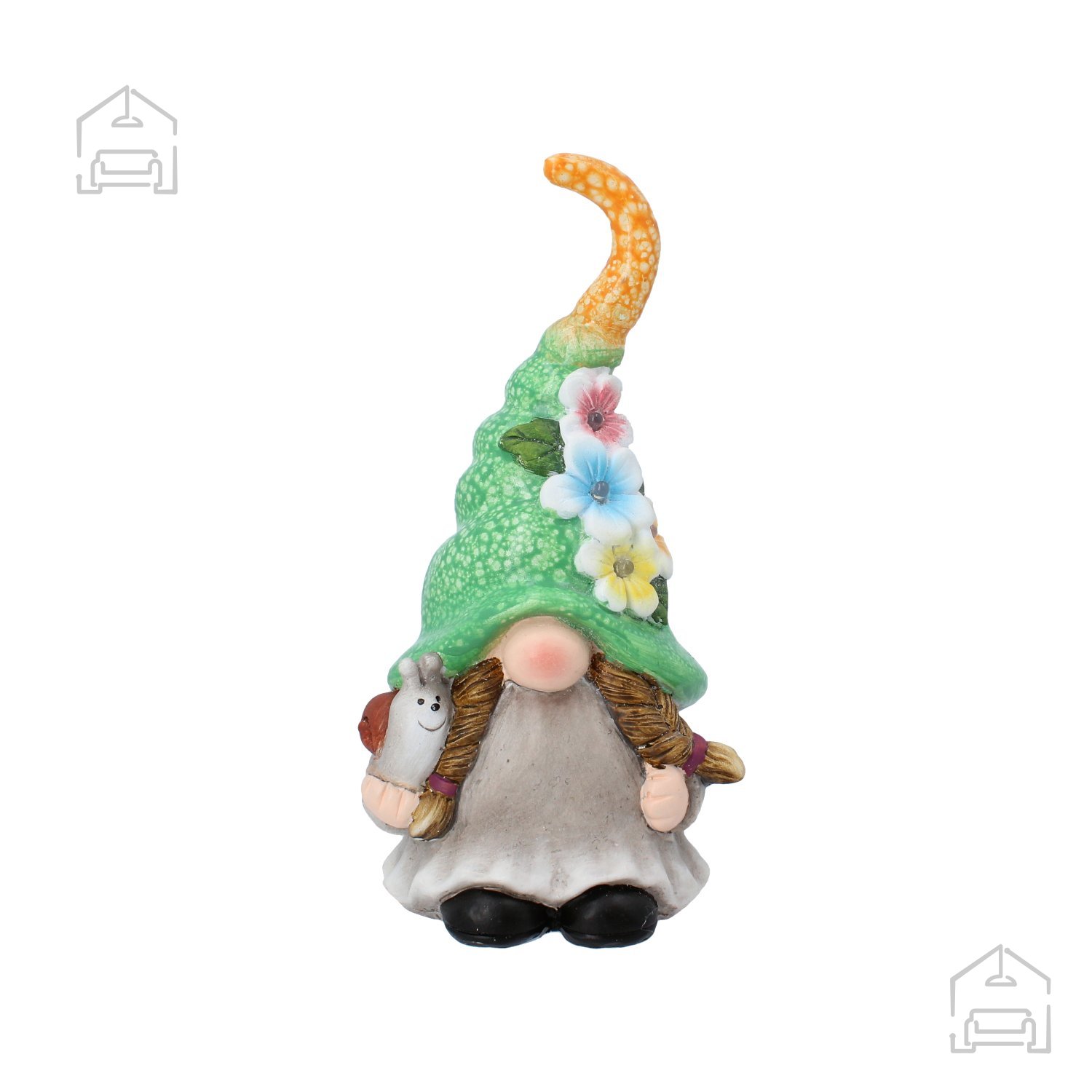 Vsaka figurica meri 11,5 × 9,6 × 23 cm, kar omogoča enostavno postavitev na vrtne mize, ob poti, na teraso, balkon ali celo v notranje prostore. Večbarvna površina figuric daje vtis ročno poslikanih detajlov in poudarja izraznost obrazov, oblačil ter dodatkov. Zaradi tega se škratka lepo ujameta z različnimi vrstami zasaditev, lončnic ali zunanjega pohištva.