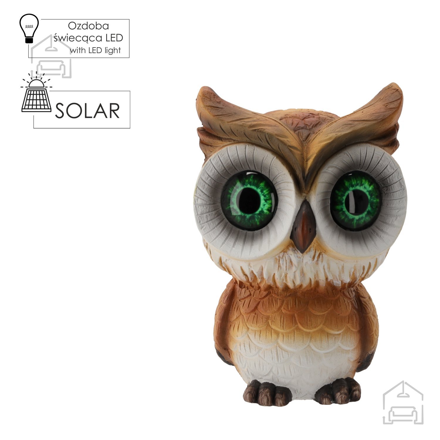 V očeh sove sta vgrajeni dve toplo beli LED diodi, ki ustvarjata prijetno svetlobo in poudarita dekorativni učinek. Osvetlitev deluje na solarno napajanje – vgrajen solarni modul čez dan zbira energijo sončne svetlobe, ki se shranjuje v akumulator 1,2 V NiMH 300 mAh. Ko se stemni, se luči samodejno vklopijo in svetijo, dokler se napolnjena energija ne porabi. Takšen sistem ne zahteva dodatnih kablov ali zunanjega vira elektrike, kar olajša postavitev in zmanjšuje porabo energije.