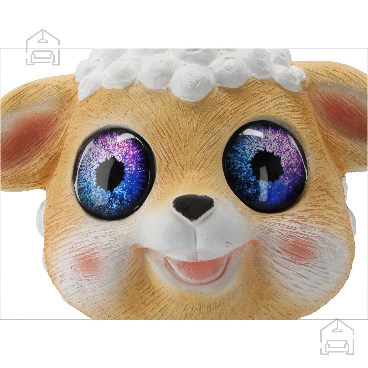 Oblika ovce je zasnovana z občutkom za detajle: mehke linije, naravna drža in prijazen izraz ustvarjajo občutek topline in domačnosti. Svetloba, ki se zvečer prižge v očeh, daje vtis živosti ter subtilno poudari teksturo materiala. Figurica se lepo ujema z naravnimi materiali, kot so kamen, les ali trava, zato jo lahko kombinirate z drugimi okrasnimi elementi, cvetličnimi lonci ali vrtno razsvetljavo.