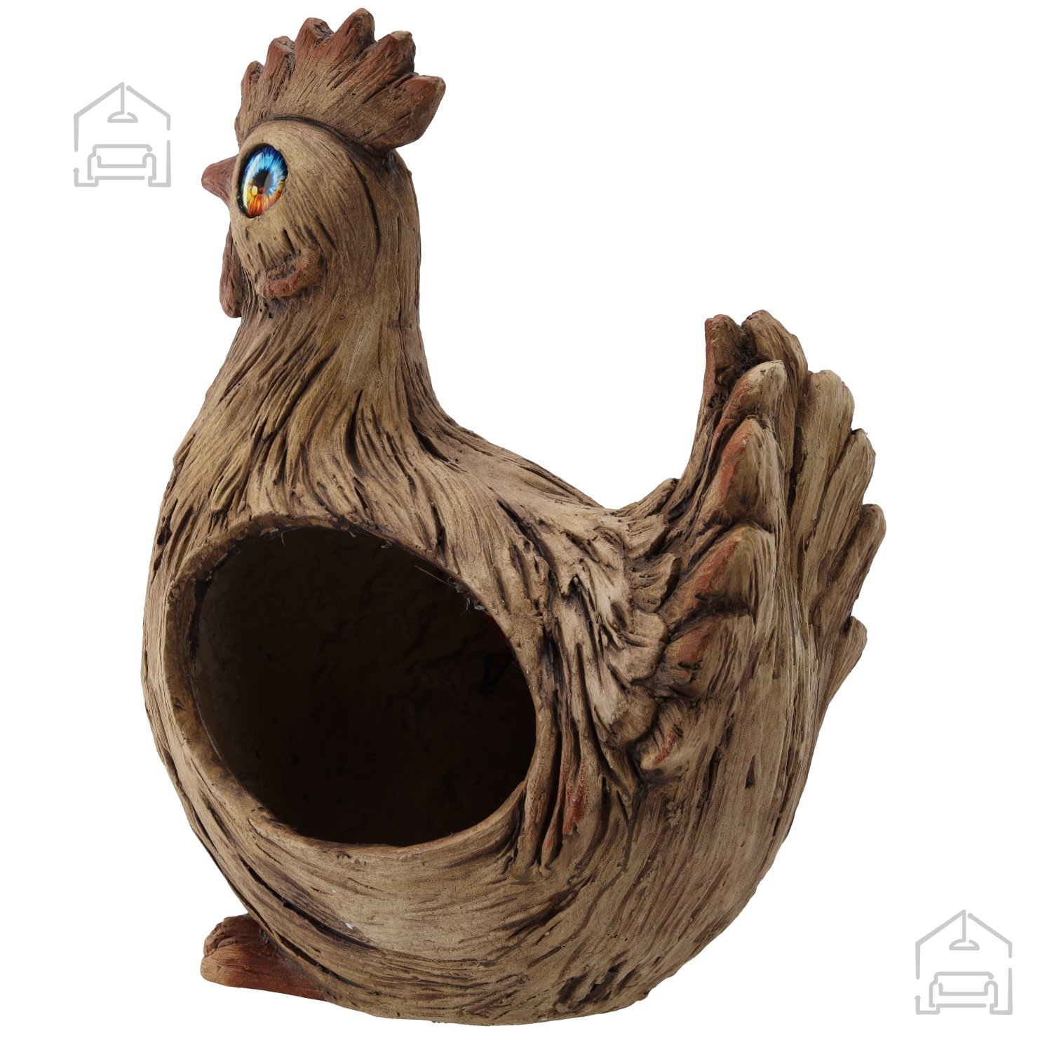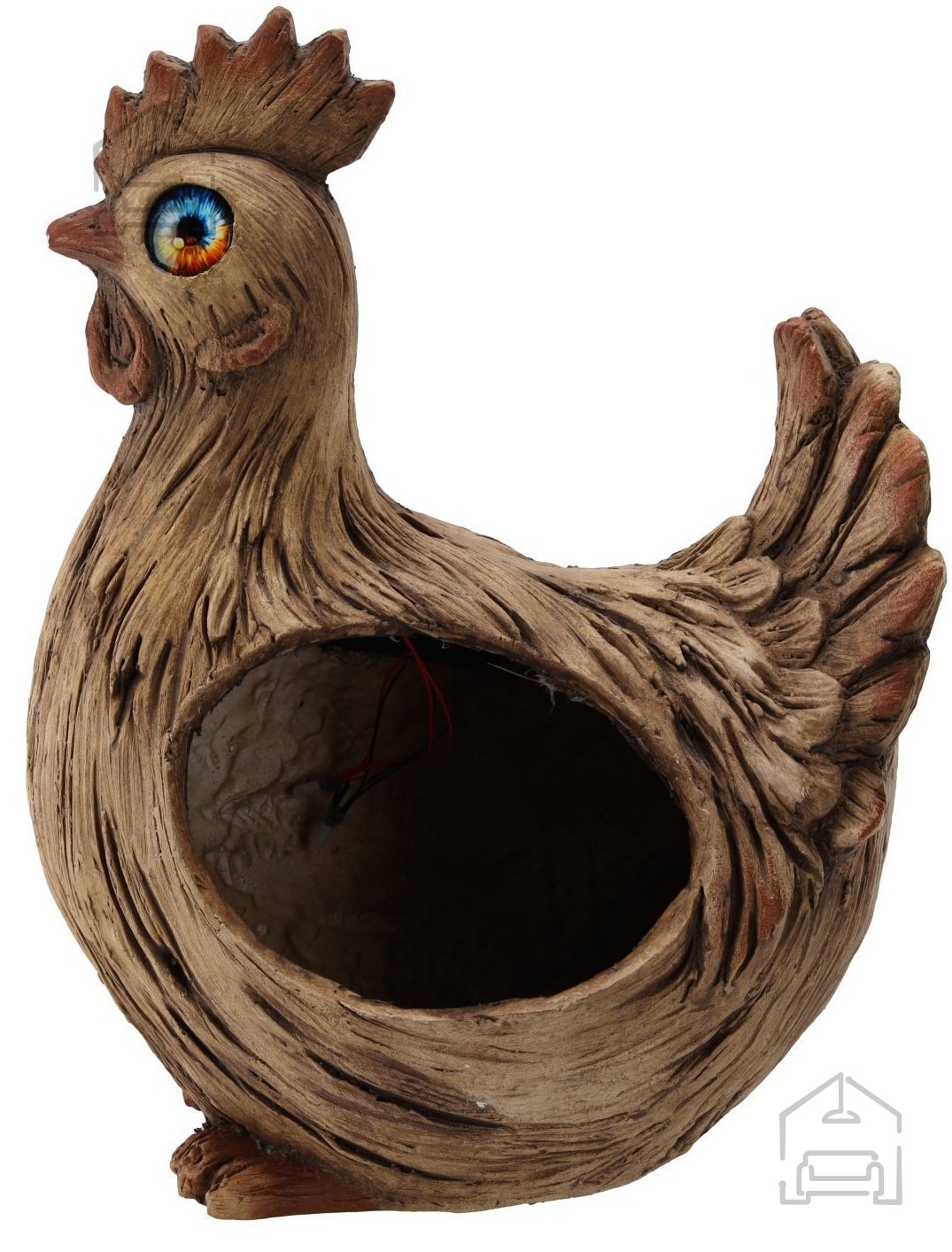 Vrtni lonec – Petelin LED – TOG0296 je zasnovan za uporabo na prostem. Odlično se poda v naravno okolje vrta, ob rob poti, na teraso ali na vhodno dvorišče. Zaradi stabilne zasnove ga lahko postavite neposredno na tla, kamnito ploščo ali vrtno mizo. Lonček v hrbtni strani petelina omogoča zasaditev manjših rastlin, zelišč ali cvetja. Tako dekoracija postane živ del vašega okolja in se sezonsko spreminja glede na izbrane zasaditve.