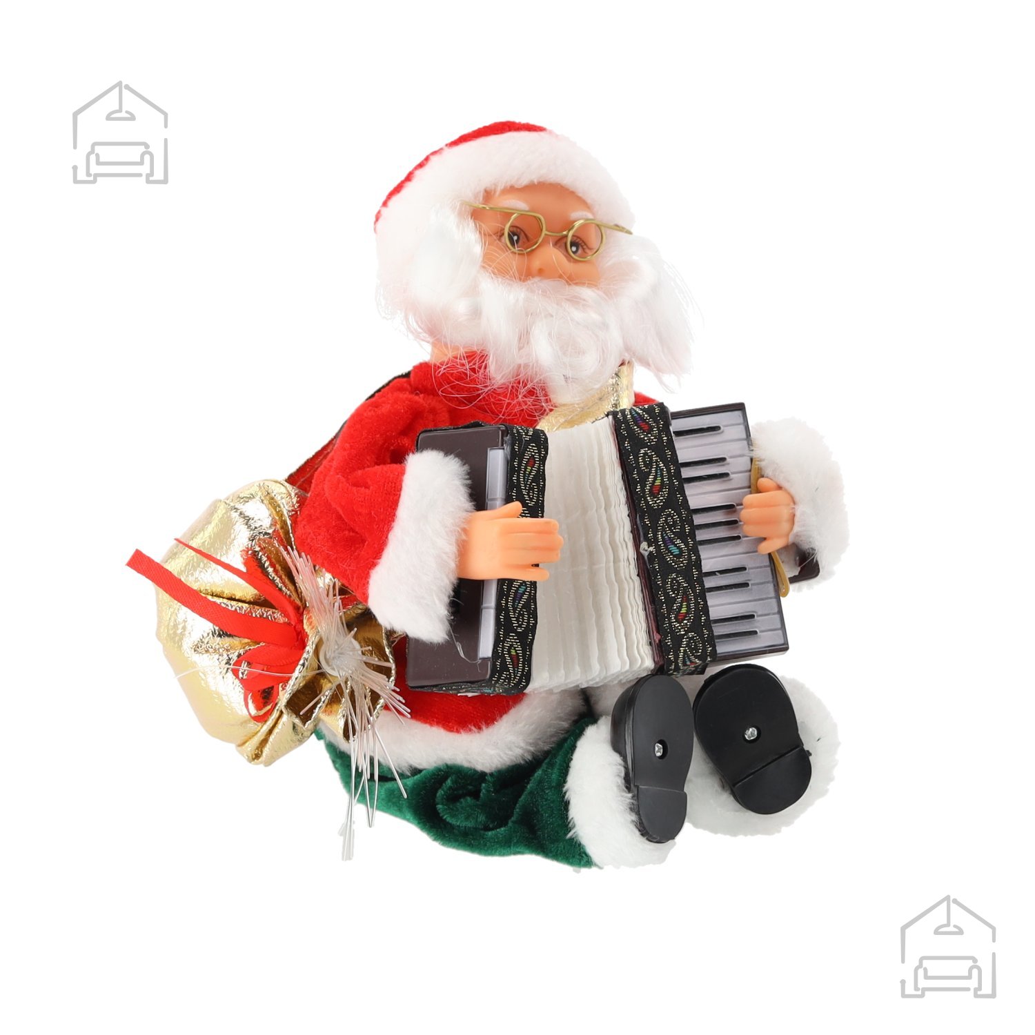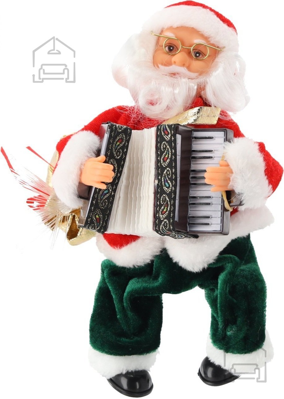 Božiček z akordeonom je praznična figura, ki v vsak prostor vnese toplino, svetlobo in veselje. Z višino 25,5 cm ter kombinacijo plastike in tkanine je ta dekorativni lik oblikovan tako, da združuje tradicionalni videz Božička z modernimi funkcijami gibanja, zvoka in LED osvetlitve. Njegov videz v rdeči, zeleni, beli in zlati barvi pritegne pozornost in obogati praznično vzdušje doma, v pisarni ali v izložbi.