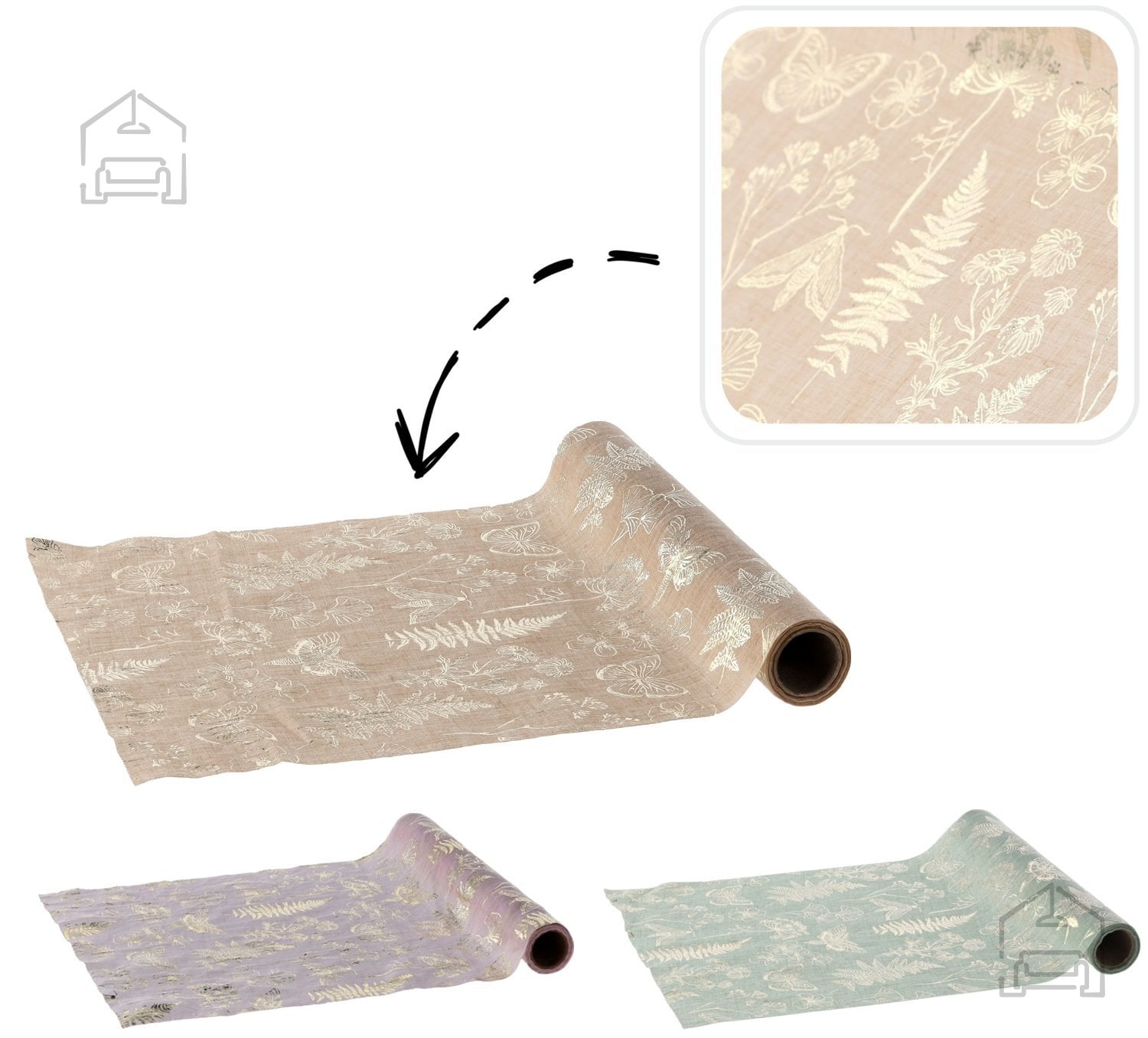 V prazničnem času jo je mogoče uporabiti kot osnovo za adventne venčke, novoletne dekoracije ali pogrinjke za slavnostne večerje. V vsakdanjih dneh pa je lepo videti kot trajen dekorativni element – na mizi, komodi ali v izložbi. Zaradi svoje dolžine omogoča ustvarjalno plastenje, zavijanje ali oblikovanje dekorativnih gub.
