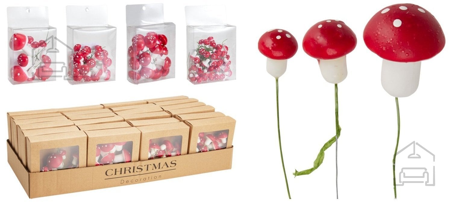 Grzybki na piku so idealni za ljubitelje ročnih del in naravne estetike. Na tankem zatiču jih je mogoče enostavno zapičiti v penasto podlago, cvetlični aranžma ali dekorativni mah. Zaradi enostavne uporabe so priljubljene pri cvetličarjih, dekoraterjih in tistih, ki radi ustvarjajo lastne praznične okraske. Rdeča barva gobic se odlično poda k zelenim, belim in naravnim tonom, zato jih pogosto najdemo v božičnih, jesenskih in rustikalnih kompozicijah.