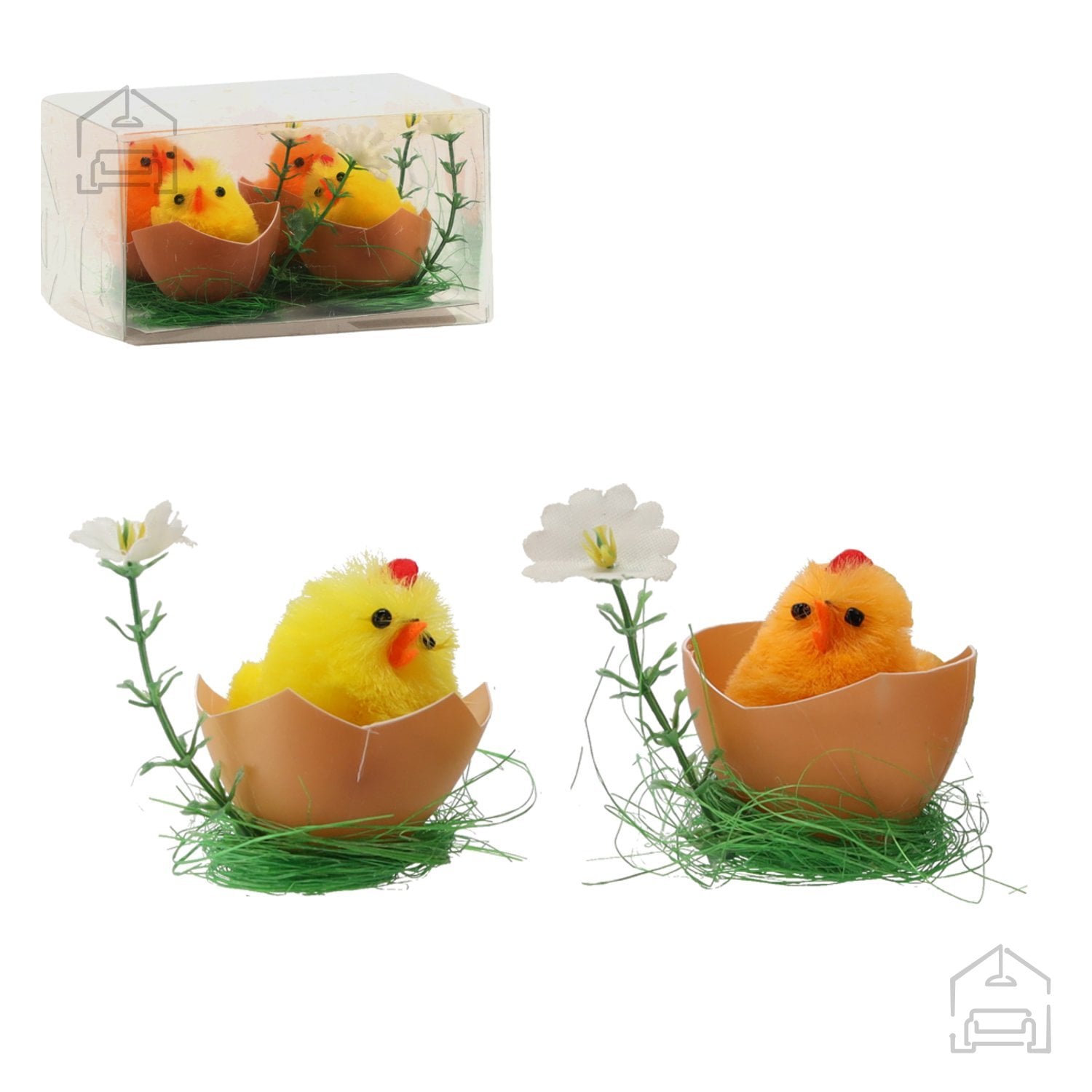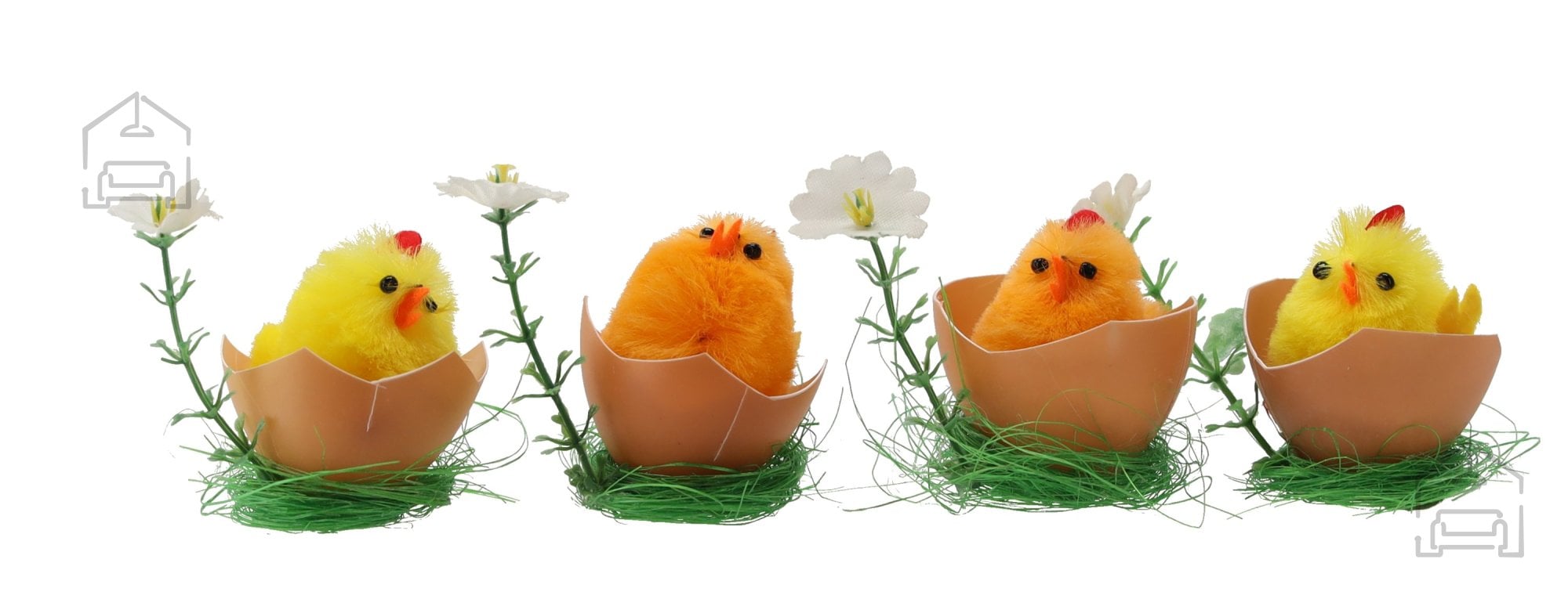 Komplet 4 velikonočnih okraskov – piščančki v lupini je prikupen dodatek za vse, ki želijo v svoj dom vnesti toplino, barvitost in občutek prazničnega veselja. Rumeni piščančki, ki kukajo iz belih lupinic, simbolizirajo novo življenje in prebujanje narave, zato so popolna izbira za spomladansko dekoracijo mize, police ali okenske police. Zaradi svoje igrive podobe bodo navdušili tako otroke kot odrasle ter poskrbeli za prijetno atmosfero v času velikonočnih praznikov.