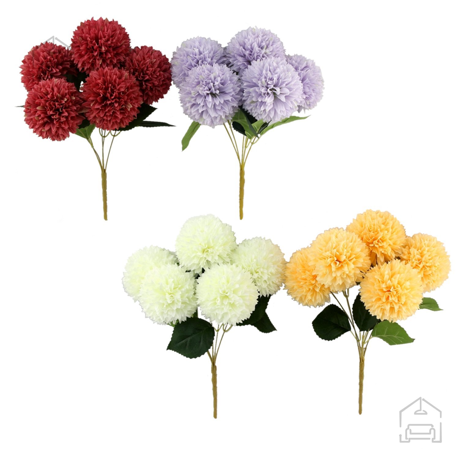 Vsaka posamezna umetna veja je sestavljena iz petih cvetnih glav, ki so povezane v harmoničen šopek. Steblo je oblikovano tako, da omogoča enostavno upogibanje in prilagajanje, kar je idealno za ustvarjanje različnih aranžmajev. Barvna paleta vključuje več odtenkov, kar daje izdelku živahen, a hkrati naraven videz. Površina cvetov ima rahlo mat zaključek, ki posnema teksturo pravega česna, kar dodatno povečuje realizem dekoracije.