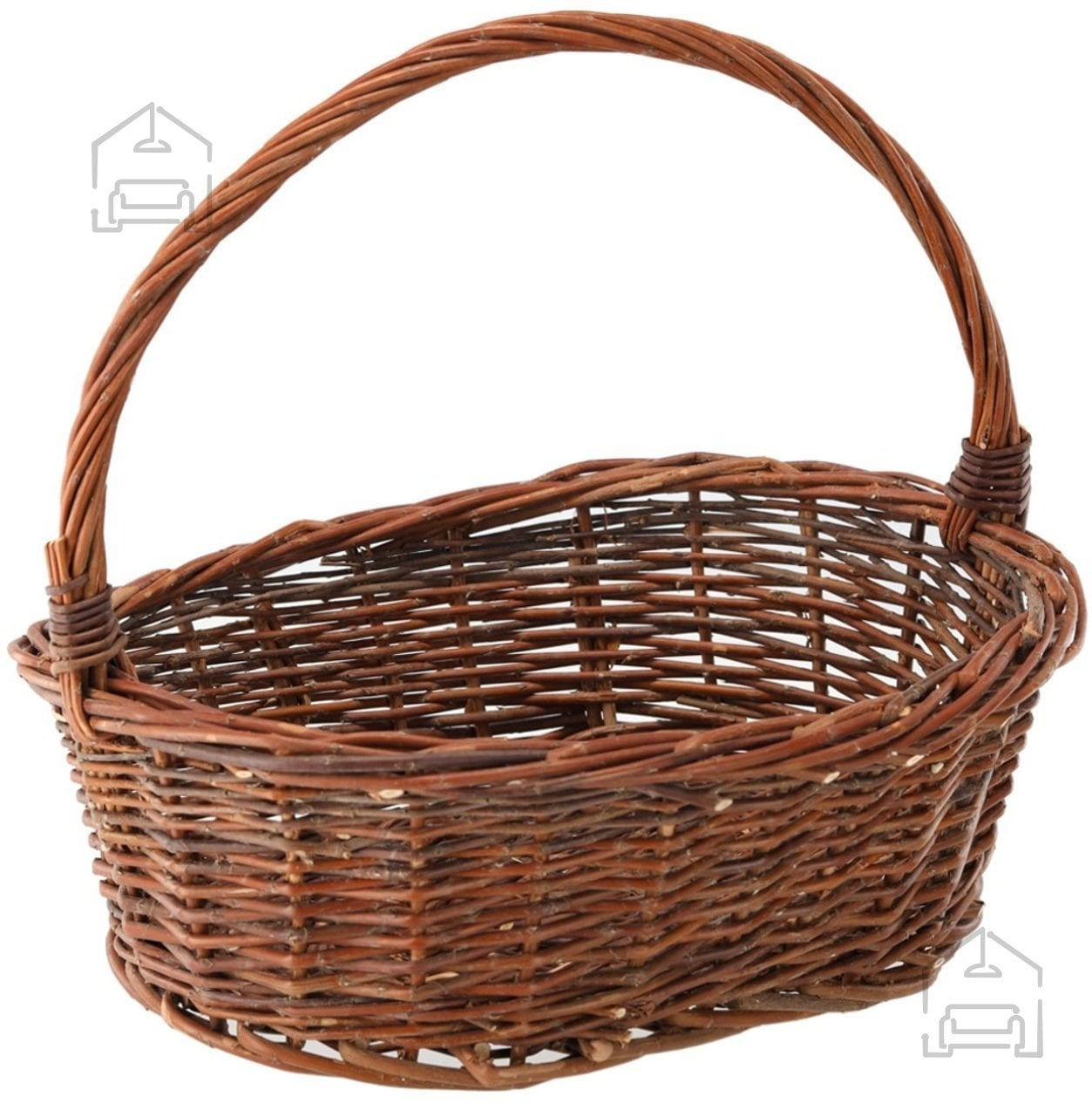 Košara ima stabilen ročaj, ki omogoča udoben oprijem in enostavno prenašanje. Zaradi uravnotežene oblike in trdne konstrukcije je primerna za vsakodnevno uporabo. Širši zgornji del olajša dostop do vsebine, dno pa je ravno in čvrsto, kar zagotavlja stabilnost, ko košaro postavimo na tla ali polico. Z višino 14 cm do roba in skupno višino 36 cm do ročaja omogoča večnamensko uporabo – kot nakupovalna košara, košara za piknik, dekorativni dodatek ali praktičen shranjevalni element v gospodinjstvu.