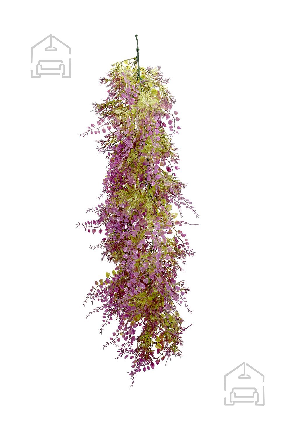 Viseča umetna rastlina Vijolična praprot – Brand je dekorativni dodatek, ki prinaša občutek narave v vsak prostor brez potrebe po zalivanju ali posebnem vzdrževanju. Izdelana je iz kakovostnega polietilena (PE), ki se ponaša z visoko odpornostjo na vremenske vplive in UV filterjem, zato barve ostanejo intenzivne tudi pri daljši izpostavljenosti soncu. Zaradi svoje realistične teksture in nežne vijolične barvne kombinacije se rastlina odlično ujema s sodobnimi in klasičnimi interierji, pa tudi z zunanjimi prostori, kot so balkoni, terase ali vrtovi.