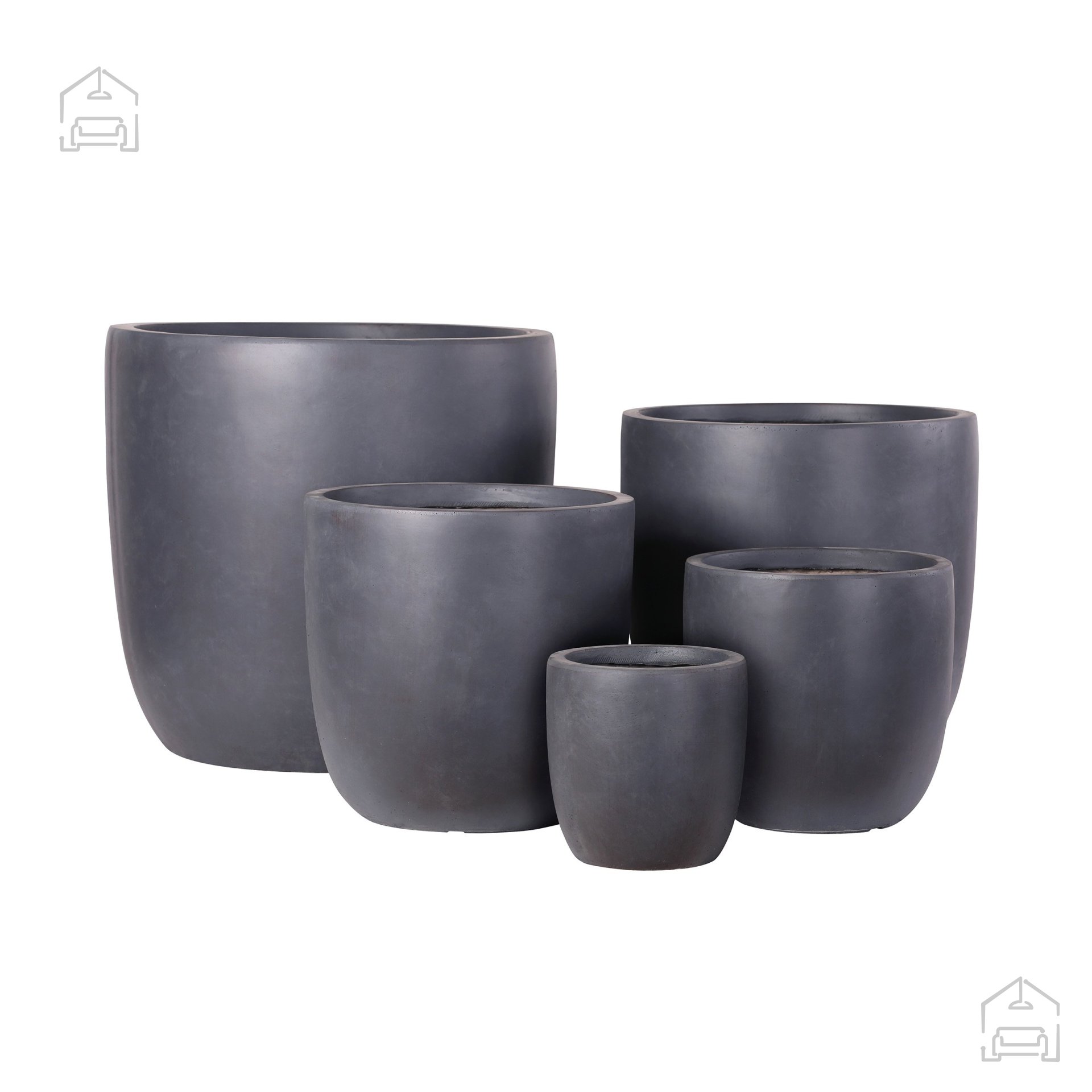 Različne velikosti loncev omogočajo ustvarjanje harmonične zasaditve, ki oživi prostor. Večje lonce lahko uporabite kot poudarjene elemente na vhodu, manjšim pa namenite vlogo dopolnilnih dekorativnih točk ob stenah, oknih ali na policah. Zaradi enotnega dizajna se vsi elementi seta lepo povežejo v celoto, kar daje prostoru občutek urejenosti in premišljenosti.