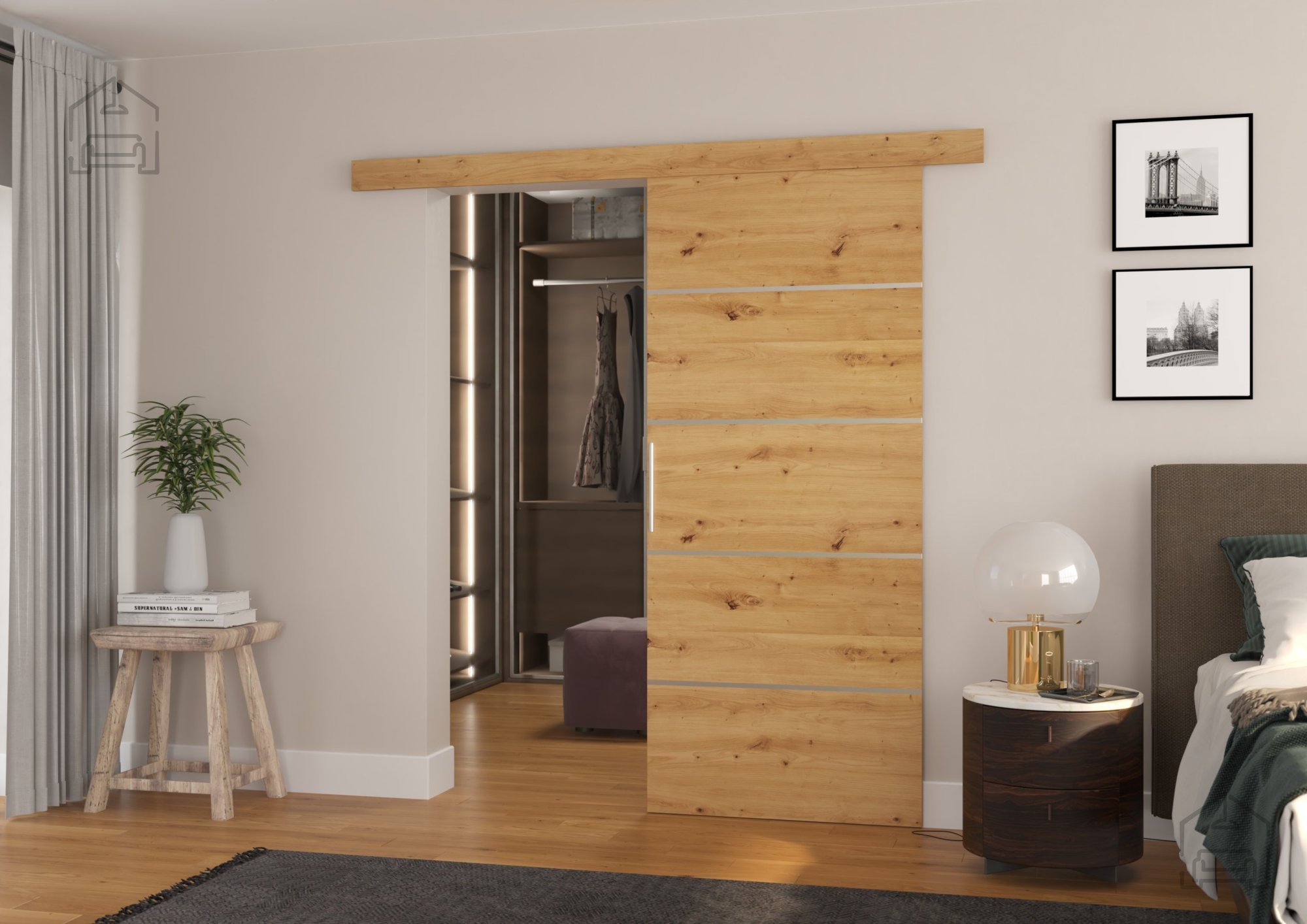Drsna medsobna vrata v barvi artisan hrasta predstavljajo popolno ravnovesje med toplino naravnega lesa in funkcionalnostjo sodobnega bivalnega prostora. Zasnovana so za tiste, ki želijo v svoj dom vnesti občutek prostornosti in urejenosti, ne da bi pri tem žrtvovali estetiko ali kakovost. Njihov minimalističen videz se harmonično zlije z različnimi slogi opreme – od rustikalnega do modernega, zato so primerna tako za stanovanja kot za poslovne prostore.