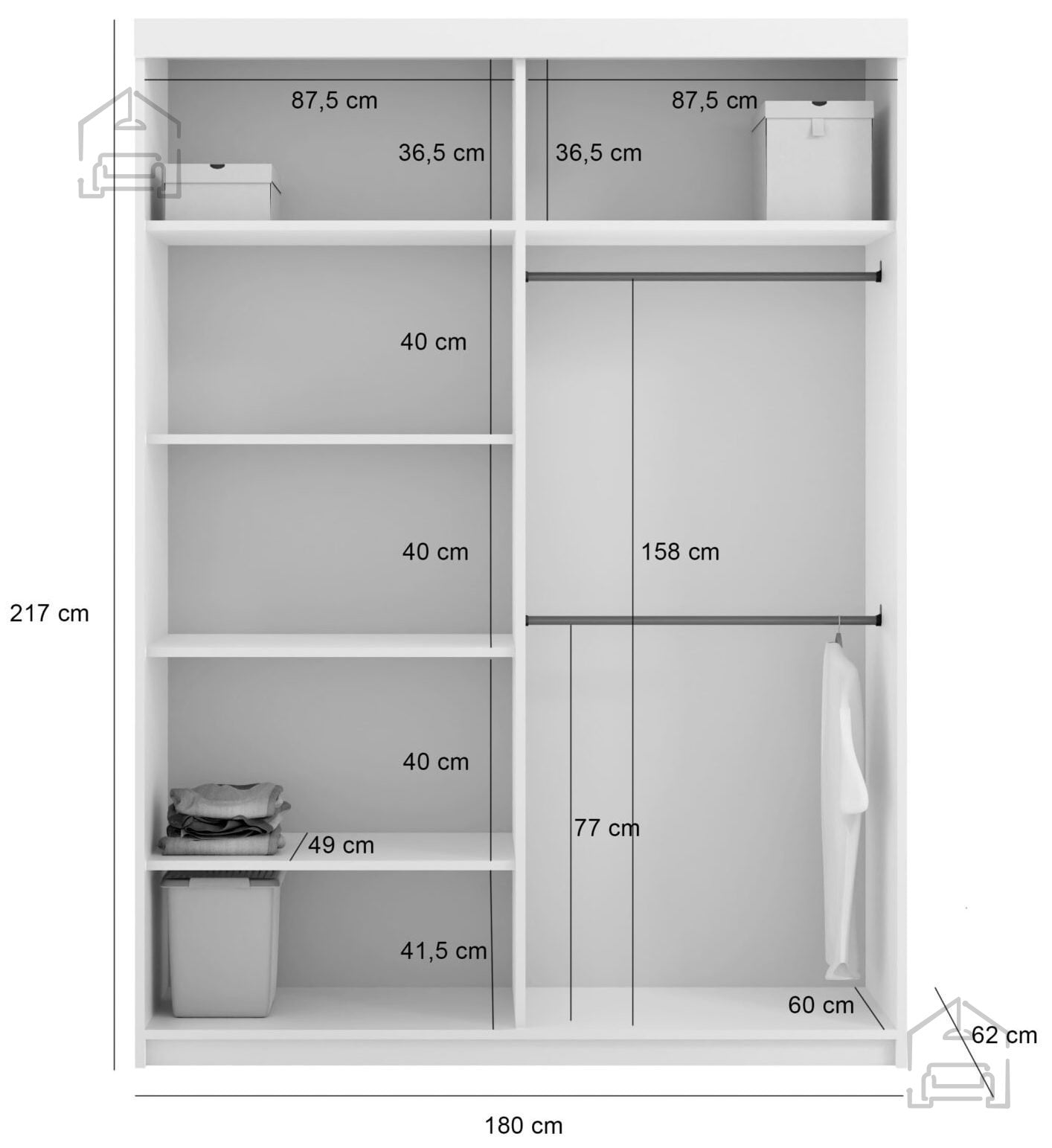 Garderobna omara Batumi 180 je sodobna in praktična garderobna omara, ki bo odlično dopolnila vašo spalnico ali hodnik. Tukaj so ključne lastnosti te omare: