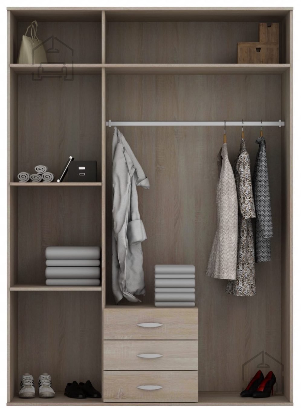 Garderobna omara Ozyrys predstavlja kombinacijo estetike in funkcionalnosti. Z edinstveno obliko, umirjenimi barvami in premišljenimi detajli bo omara zagotovo postala poudarek vašega prostora. Poleg tega pa ponuja tudi praktičen prostor za shranjevanje oblačil in drugih predmetov, kar naredi to omaro popolno za vašo spalnico ali drug prostor v vašem domu.