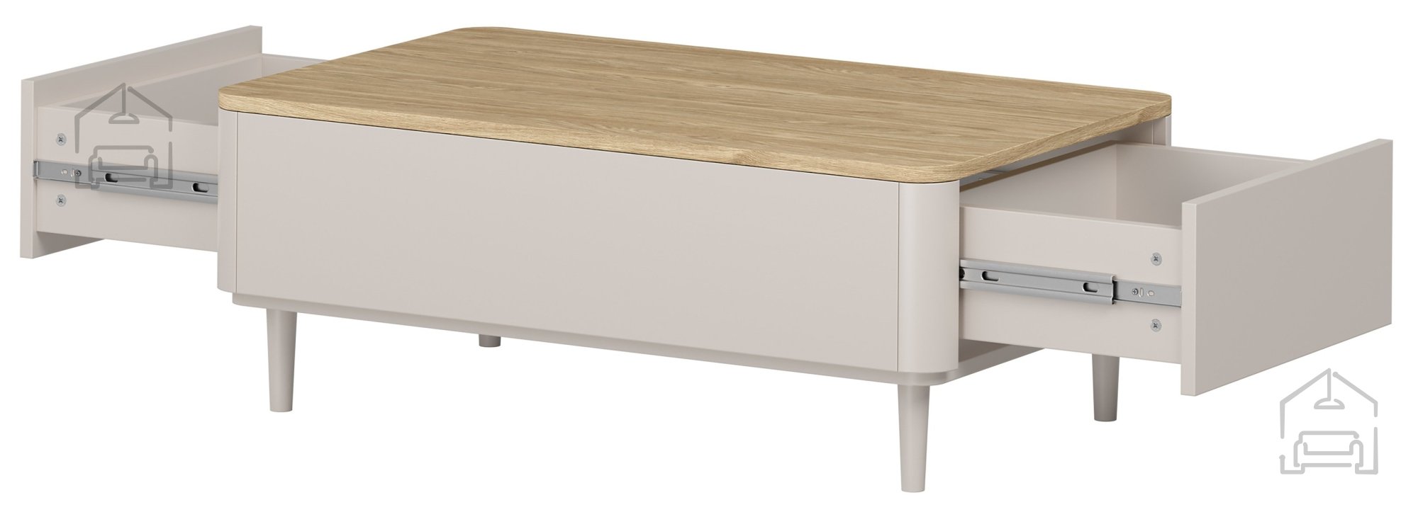 Model Elivo 100 2SZ je odlična izbira za vse, ki cenijo estetiko sodobnih, skandinavskih ali japandi interierjev. Gladke površine brez ročajev, mehke linije in naravni toni ustvarjajo občutek harmonije, ki se zlahka ujema z drugimi elementi notranje opreme. Mizica se lepo poda k svetlim sedežnim garnituram, tekstilom v nevtralnih barvah ali lesenim dodatkom. Zaradi svoje univerzalne zasnove pa se prav tako lepo ujame s kontrastnimi, temnejšimi površinami, kjer poudari toplino lesa in subtilnost kašmirja.