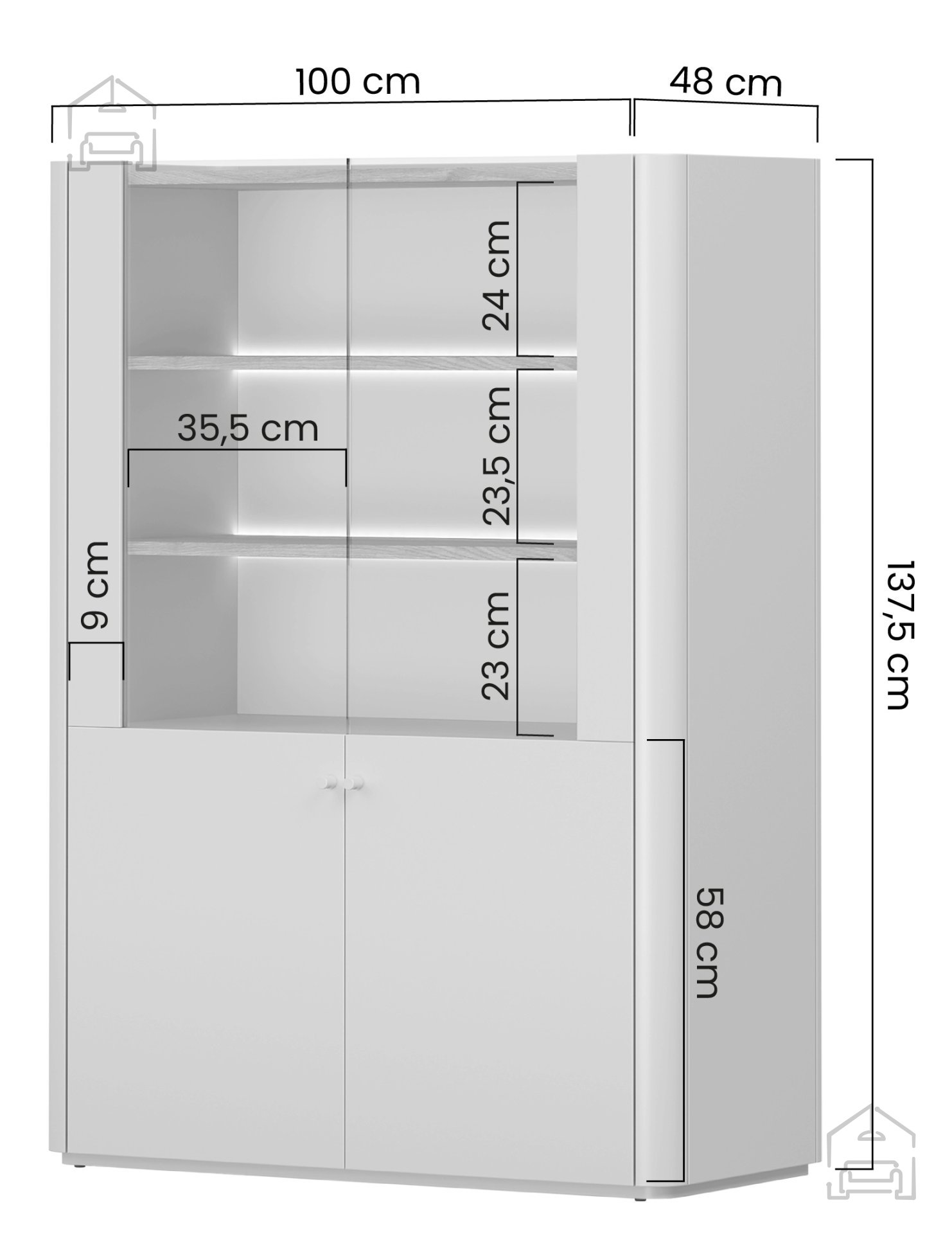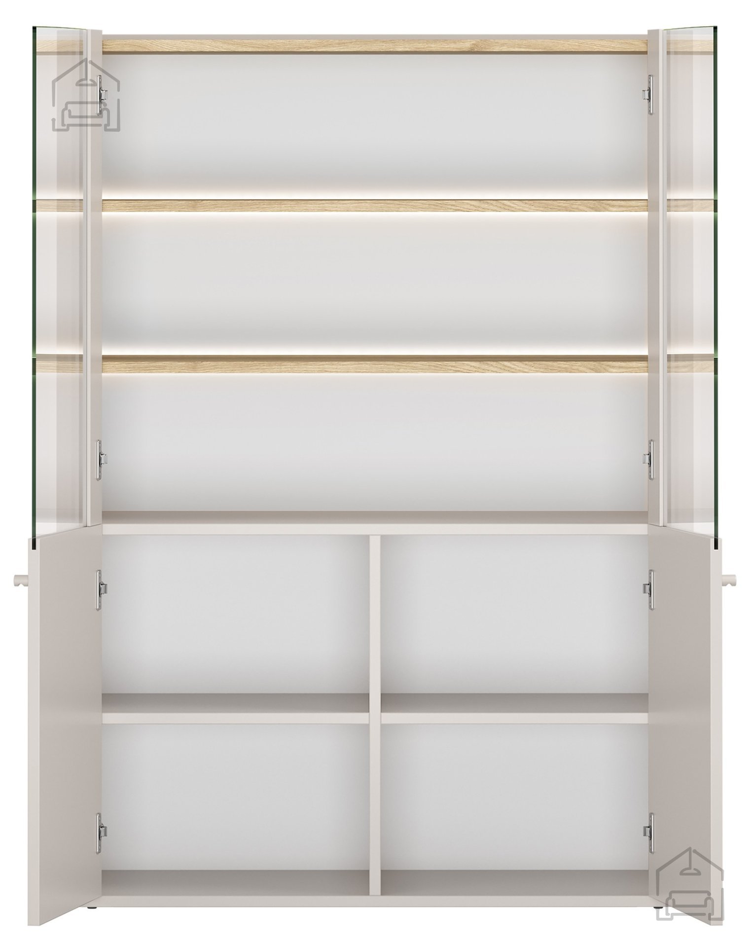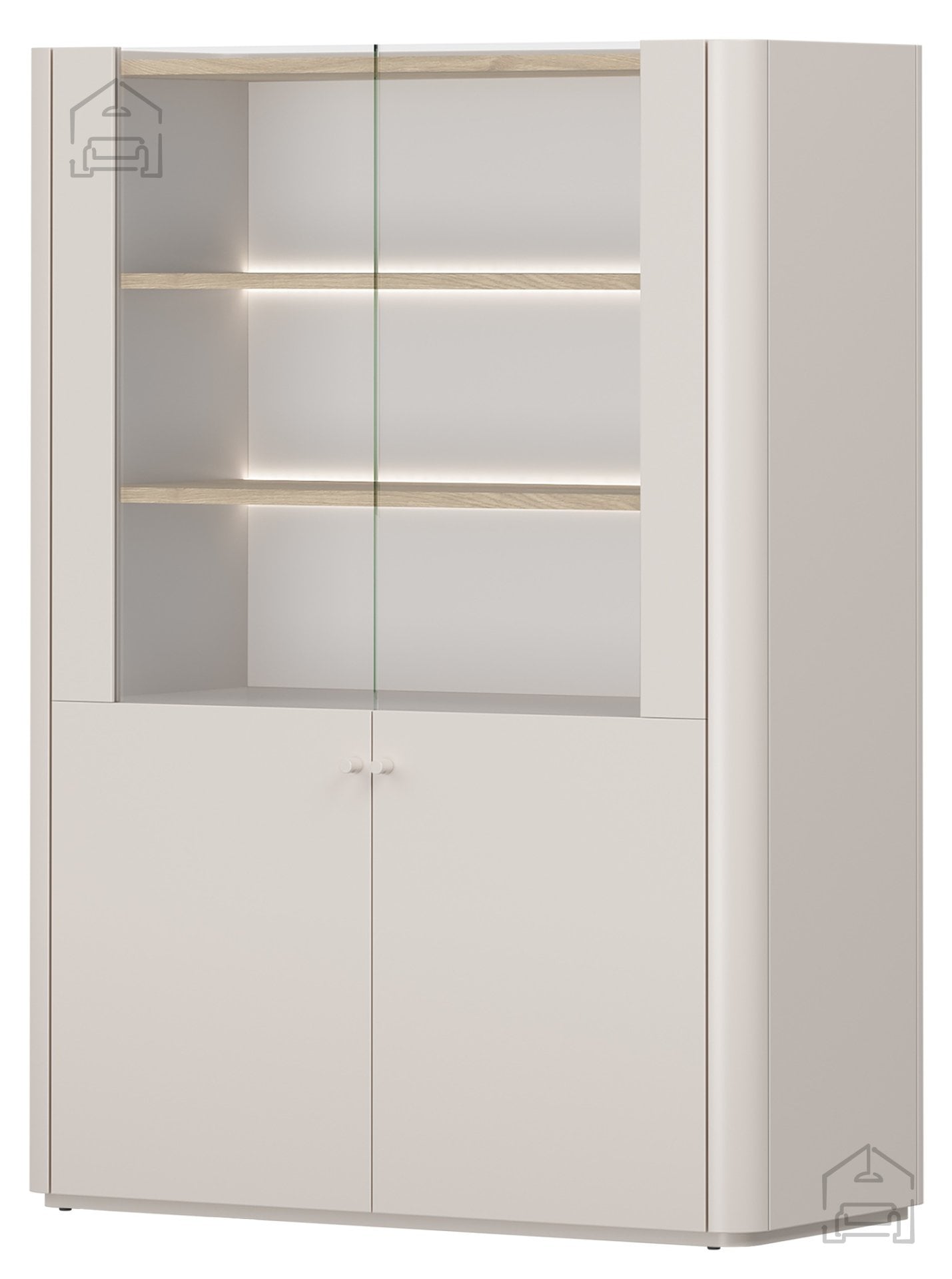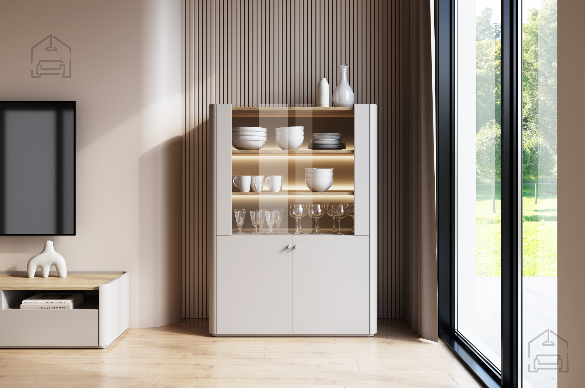 Vitrina Elivo 100 2D znamke Bogart združuje toplino naravnega lesa z elegantnim odtenkom kašmirja. Ta kombinacija ustvari videz, ki se popolnoma poda v sodobne dnevne prostore, jedilnice ali večnamenske sobe, kjer je poudarek na minimalističnem, a hkrati domačem vzdušju. Izdelana je v tovarni Bogart na Poljskem, znani po kakovostni obdelavi plošč in natančni izvedbi detajlov. Njene uravnotežene mere 100×48×137,5 cm omogočajo prostorno notranjost, ne da bi pri tem zavzela preveč prostora v prostoru.